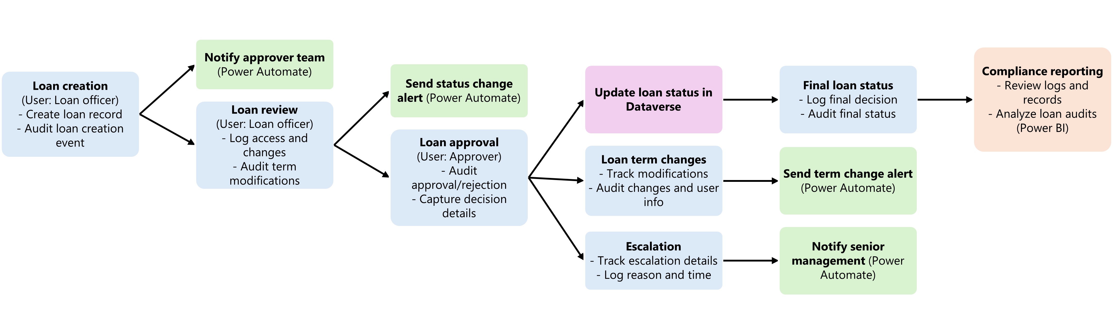 - Trigger: A loan officer creates a loan application in Dataverse.