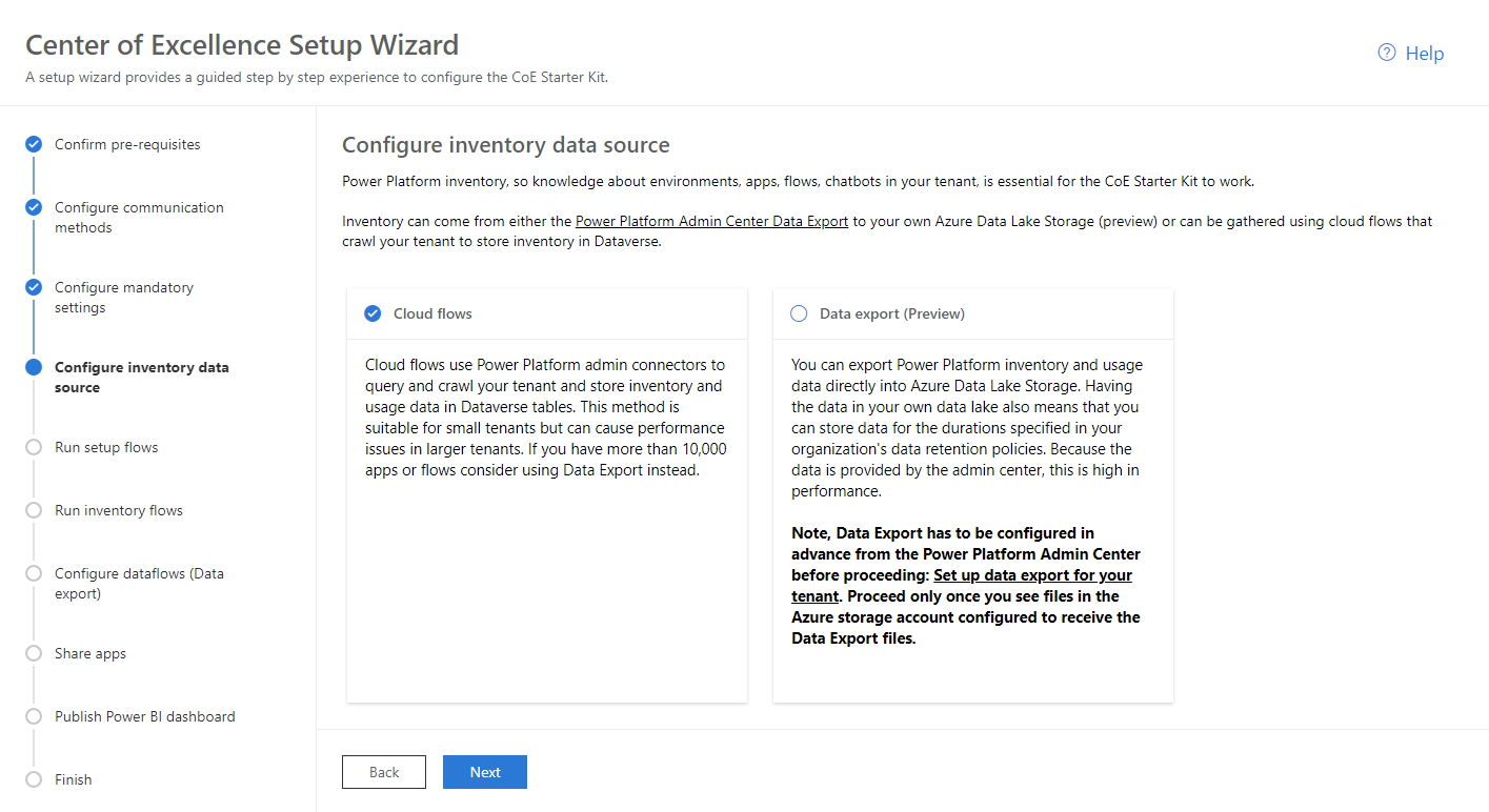 - Setting up the inventory components by using Data Export is only supported through the Setup Wizard. Manual setup instructions are available after the experimental preview.