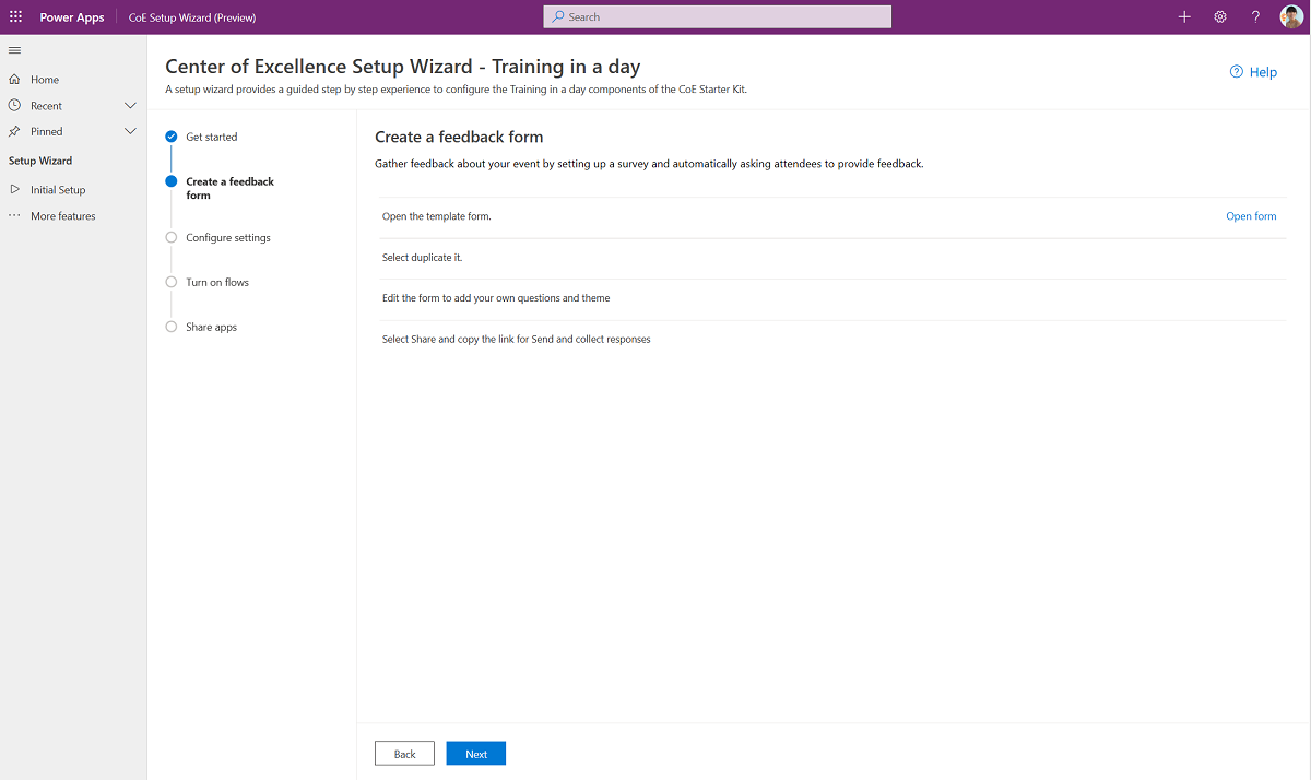 Open the Microsoft Power Platform Training Feedback template form.