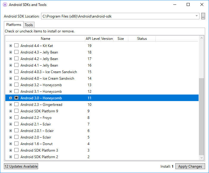 Fragments are available in the Android SDK starting with API level 11 (Android 3.0), as shown in the following screenshot: