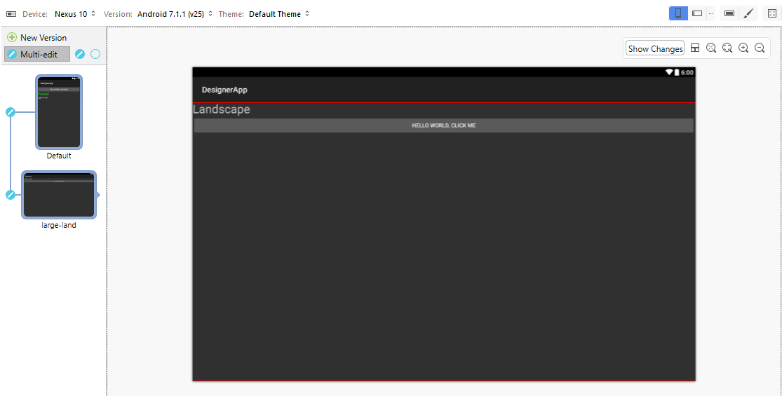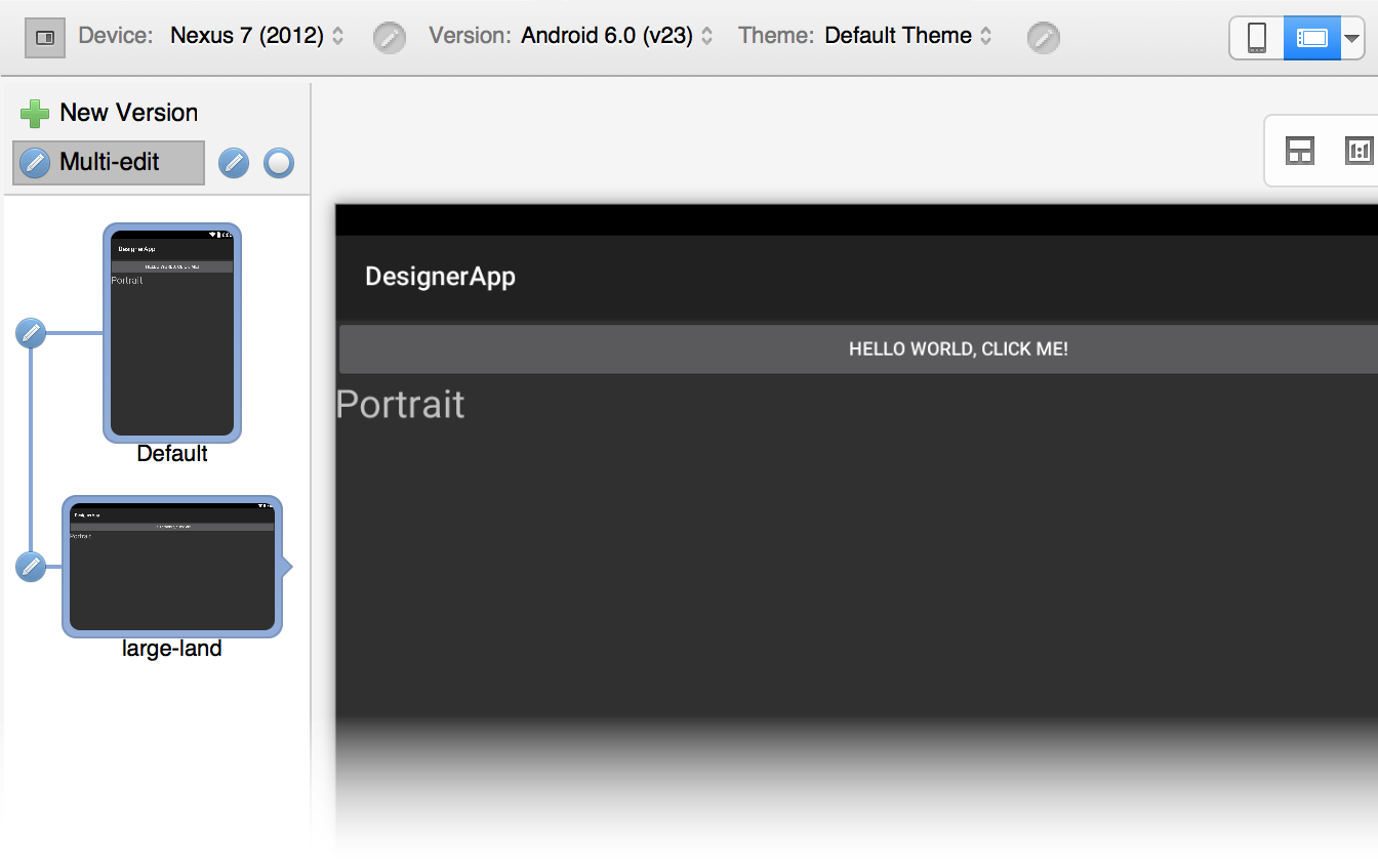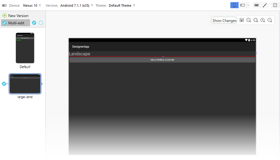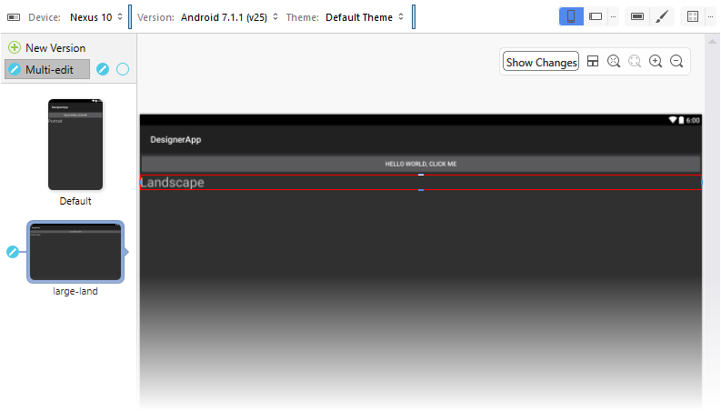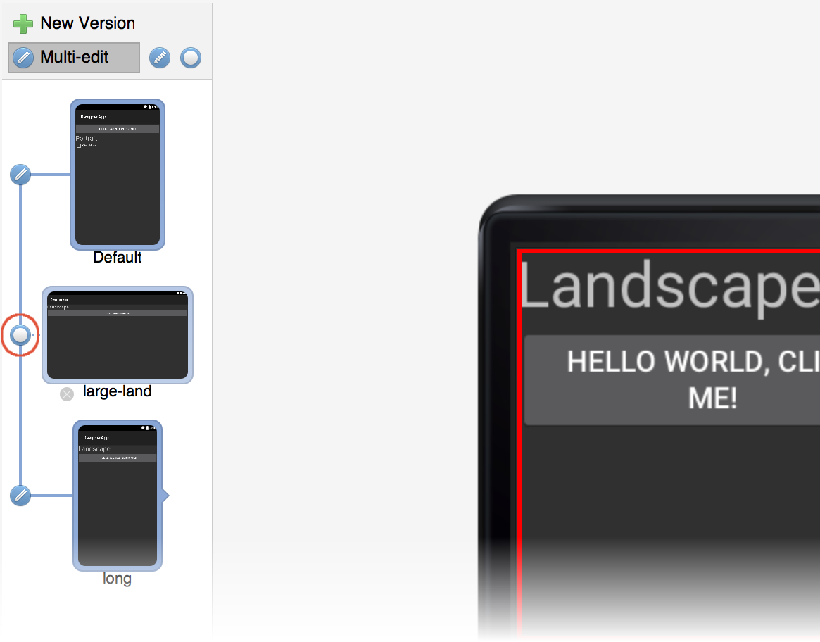 In this example, a change made to either the Default or long layout will be propagated to the other layout but not to the large-land layout.