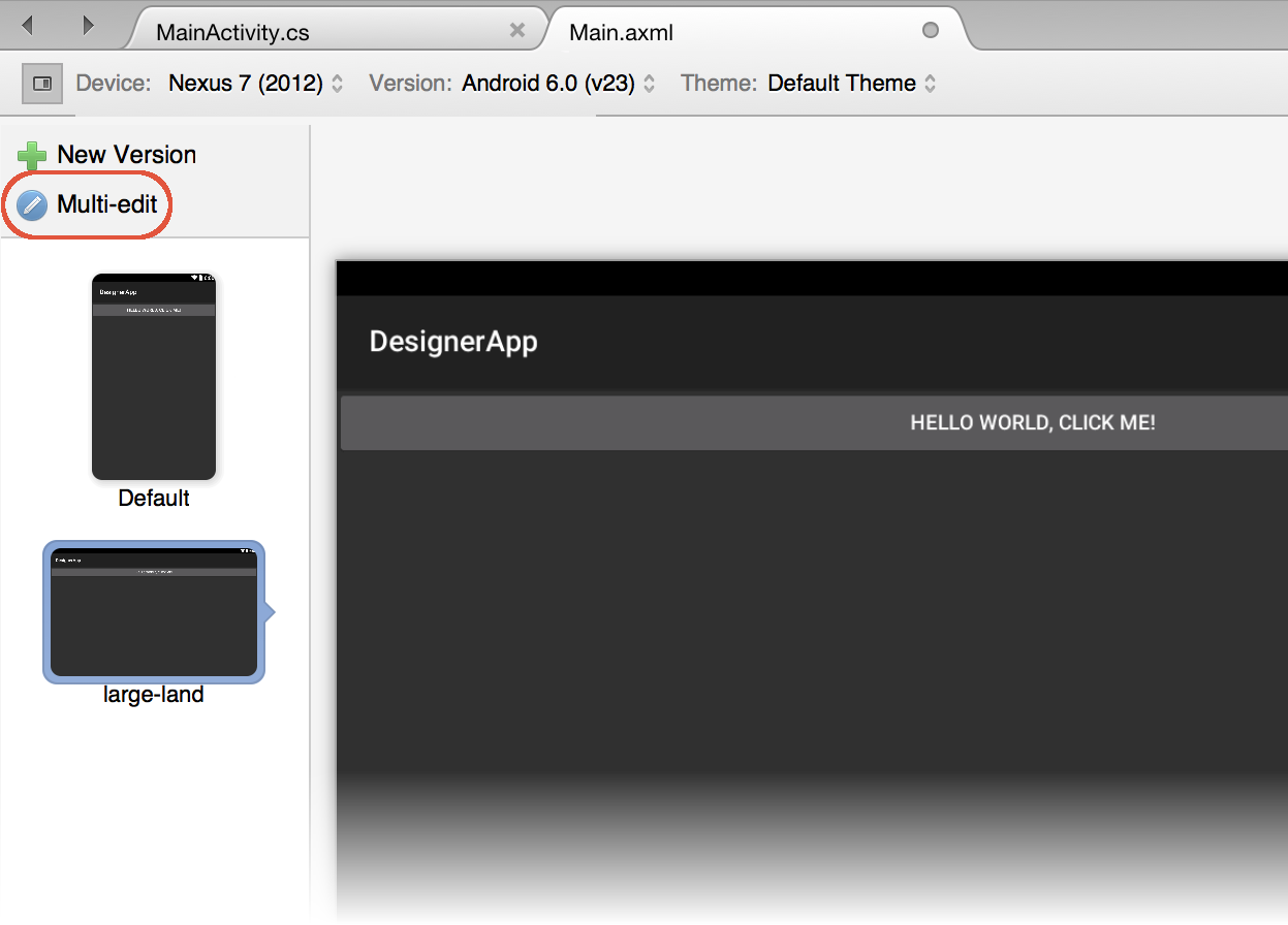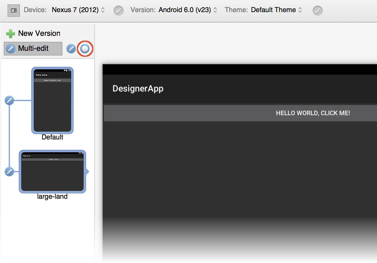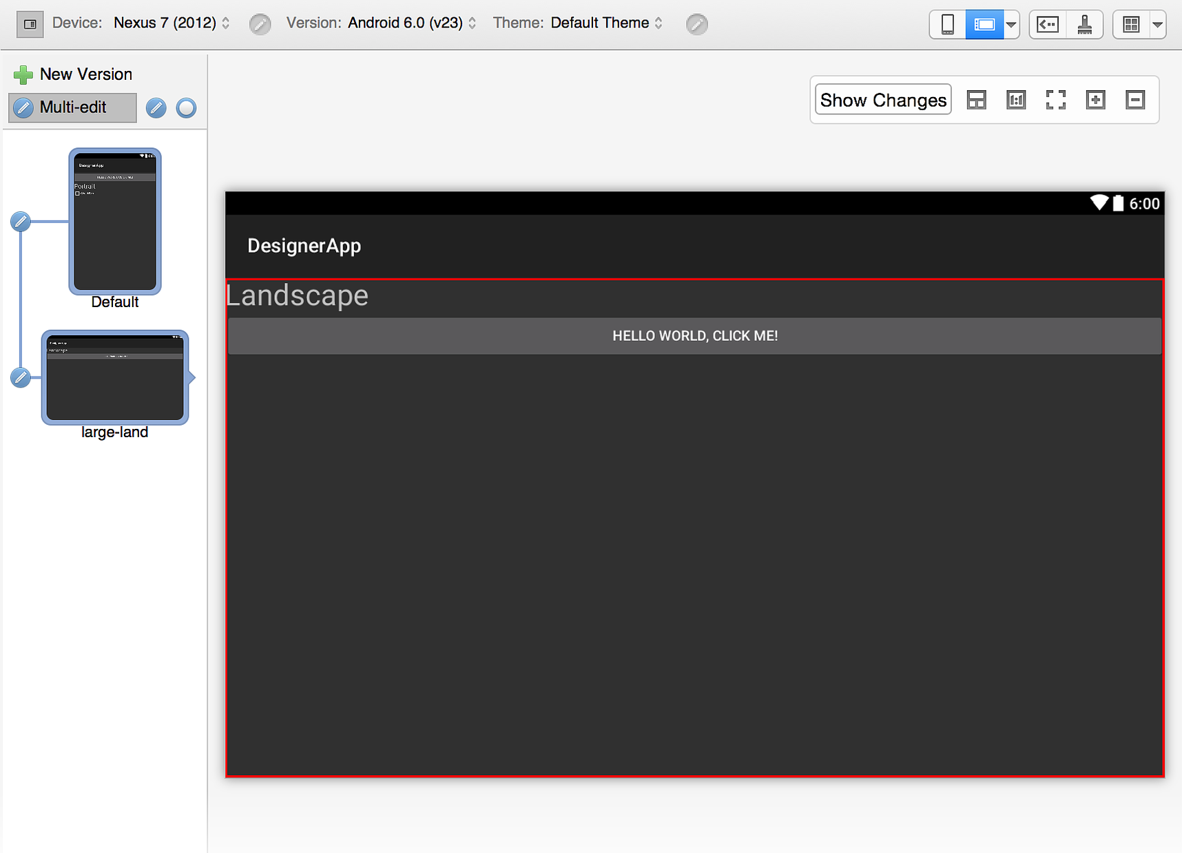 In this example, a change made to either the Default or long layout will be propagated to the other layout but not to the large-land layout.