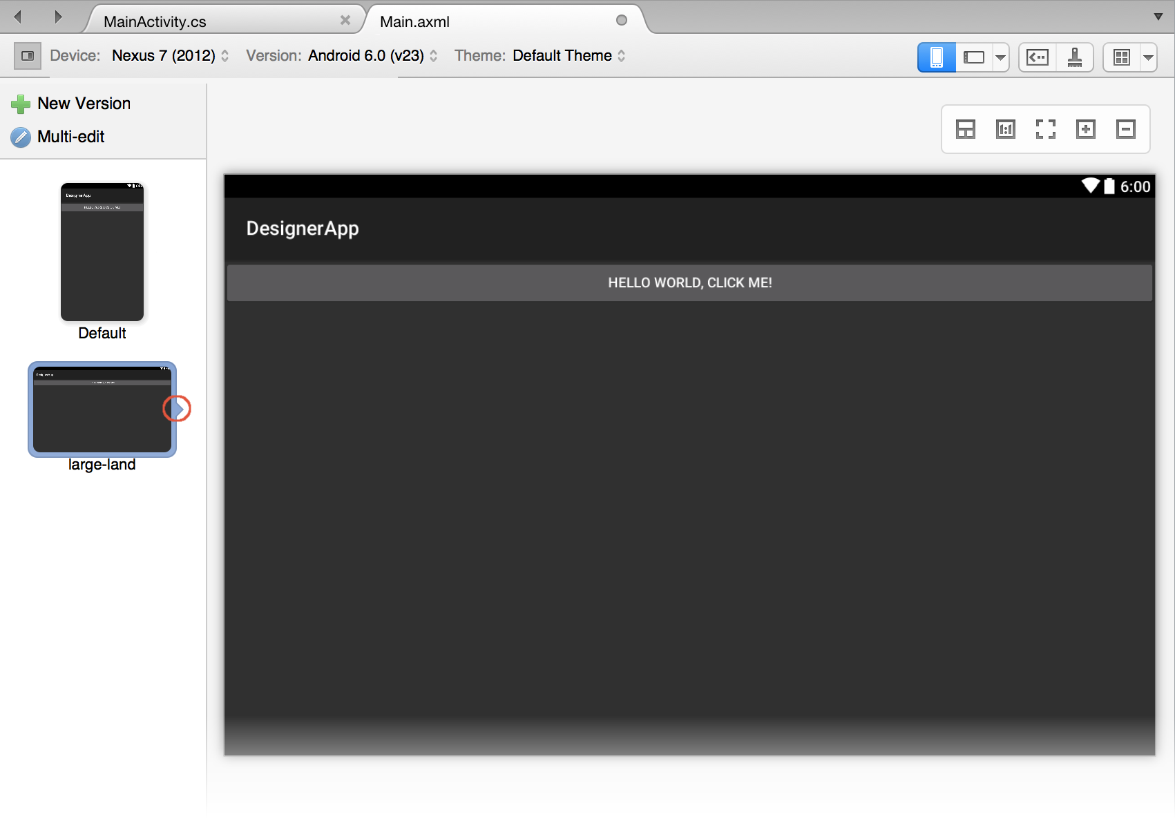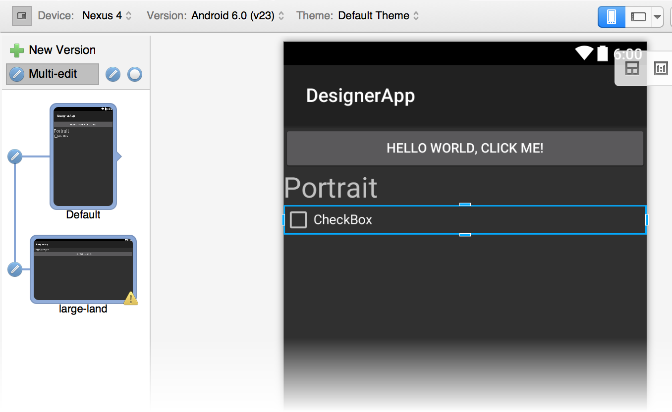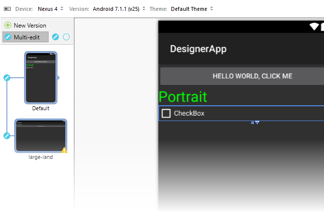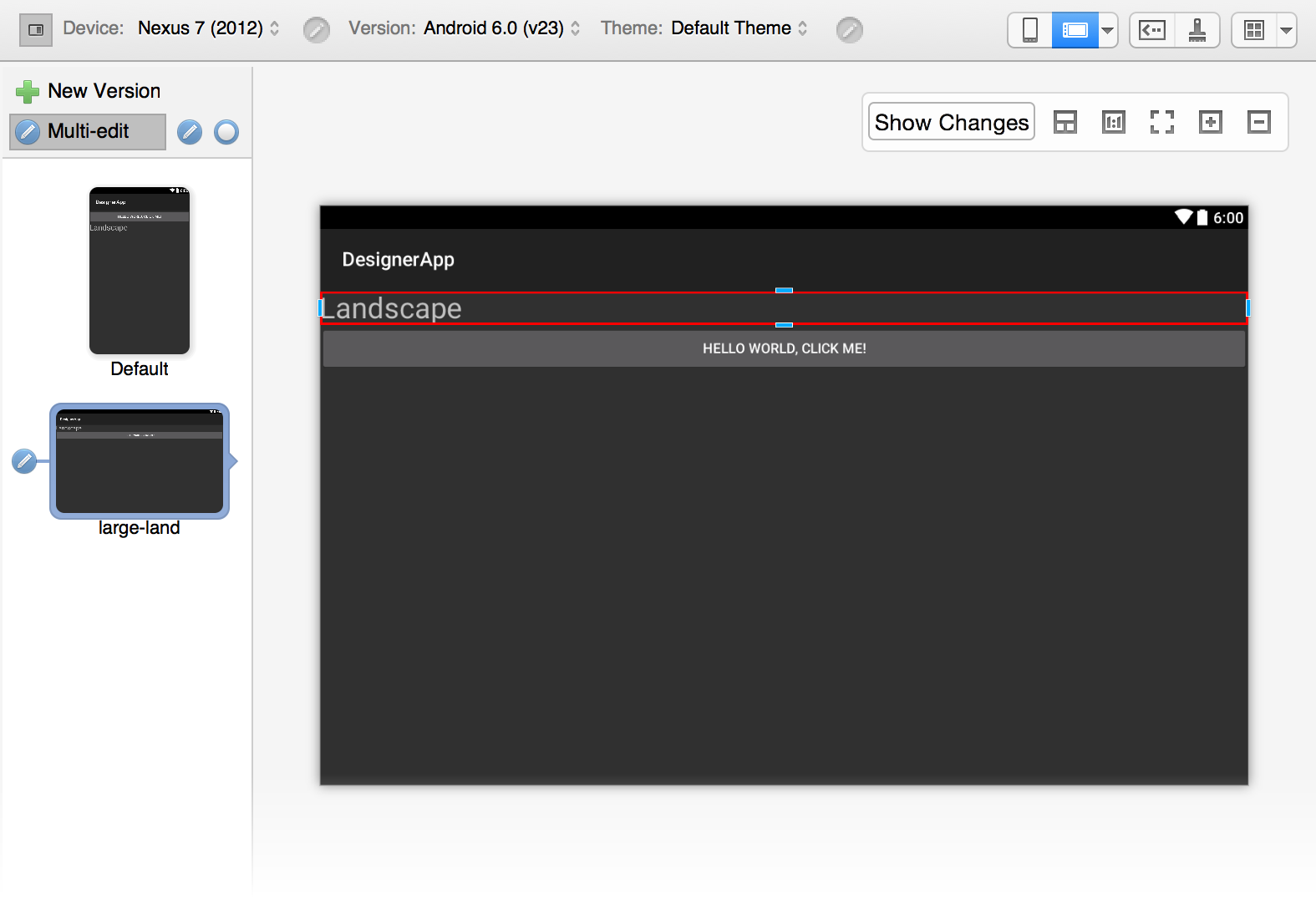 layout, and the TextView in the large-land layout is dragged