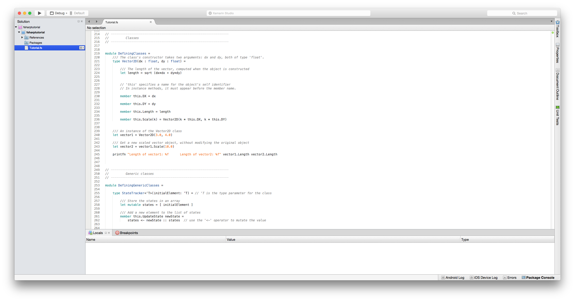 An F# tutorial can also be created from within the New Solution dialog in Visual Studio for Mac. Navigate to Other > .NET > F# Tutorial, as detailed in the image below: