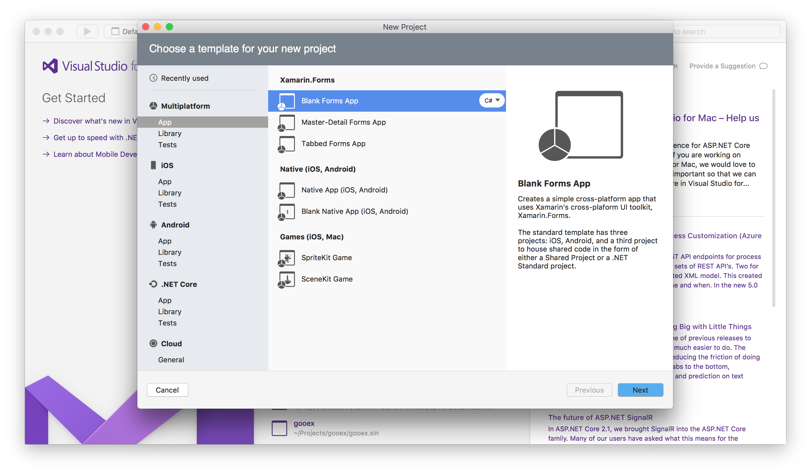 Choose File > New Solution... or press the New Project... button, then select Multiplatform > App > Blank Forms App: