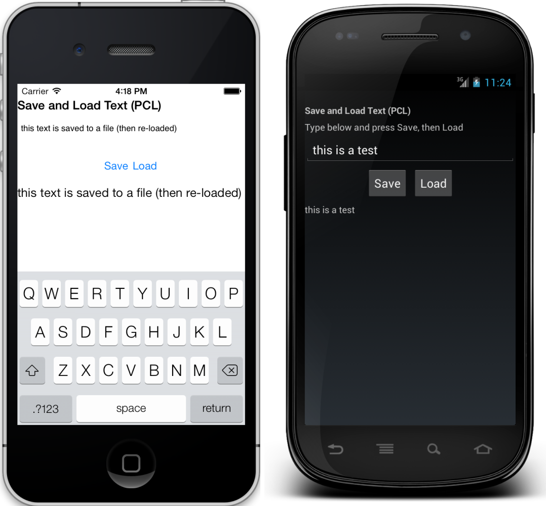 These operations are demonstrated in the sample app, which includes a page that saves and loads text: