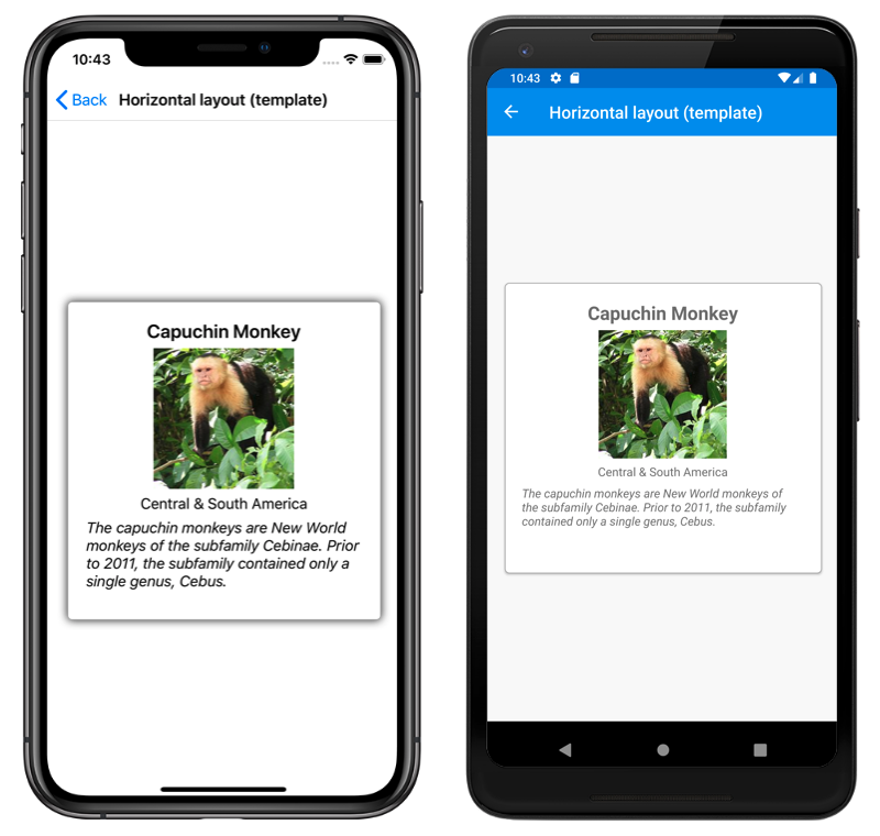 <CarouselView ItemsSource="{Binding Monkeys}">
