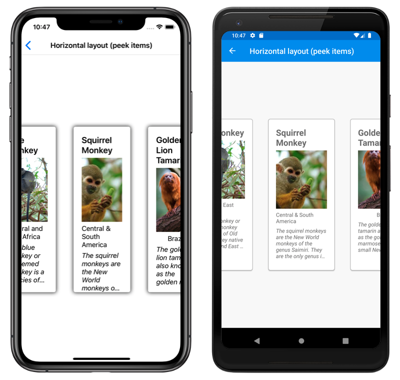 <CarouselView ItemsSource="{Binding Monkeys}"