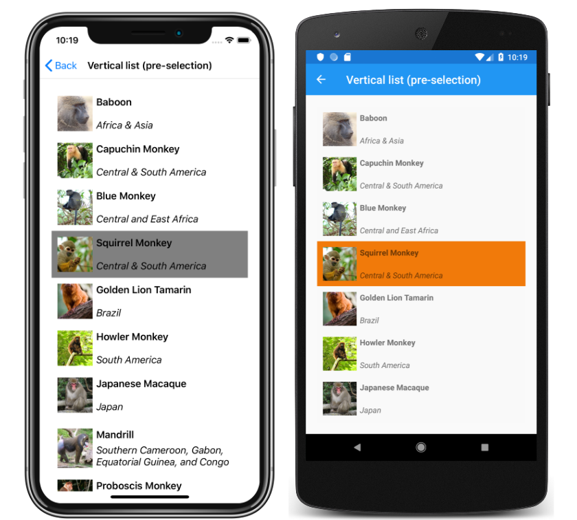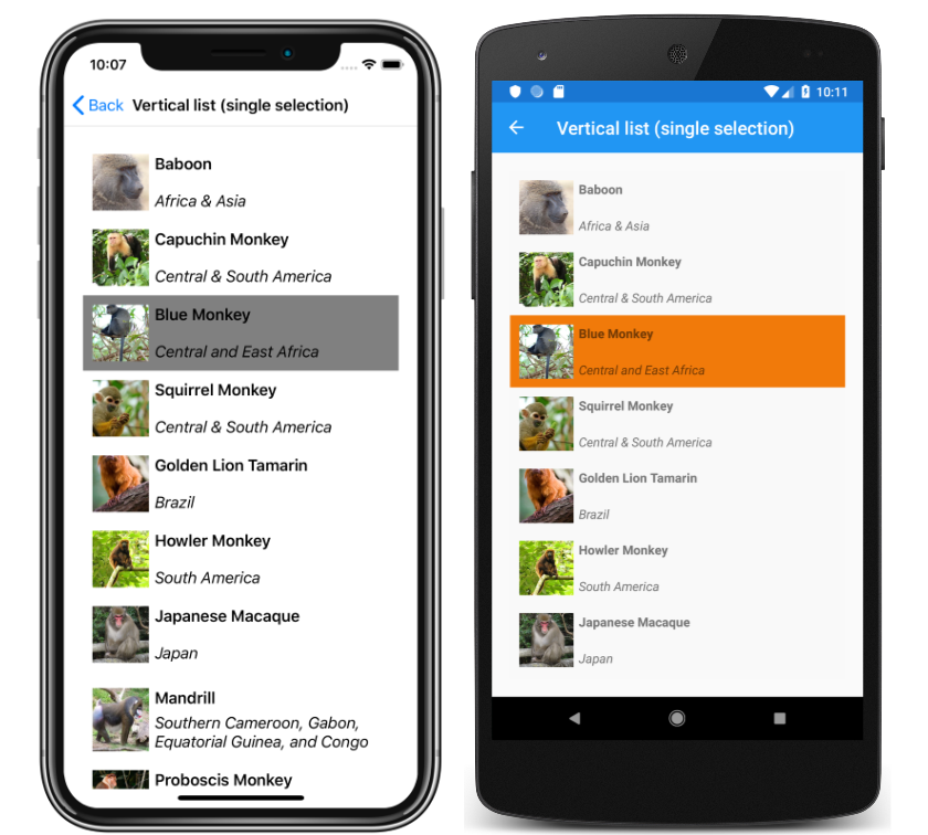SelectionMode, of typeSelectionMode, the selection mode.SelectedItem, of typeobject, the selected item in the list. This property has a default binding mode ofTwoWay, and has anullvalue when no item is selected.SelectedItems, of typeIList<object>, the selected items in the list. This property has a default binding mode ofOneWay, and has anullvalue when no items are selected.SelectionChangedCommand, of typeICommand, which is executed when the selected item changes.SelectionChangedCommandParameter, of typeobject, which is the parameter that's passed to theSelectionChangedCommand.
