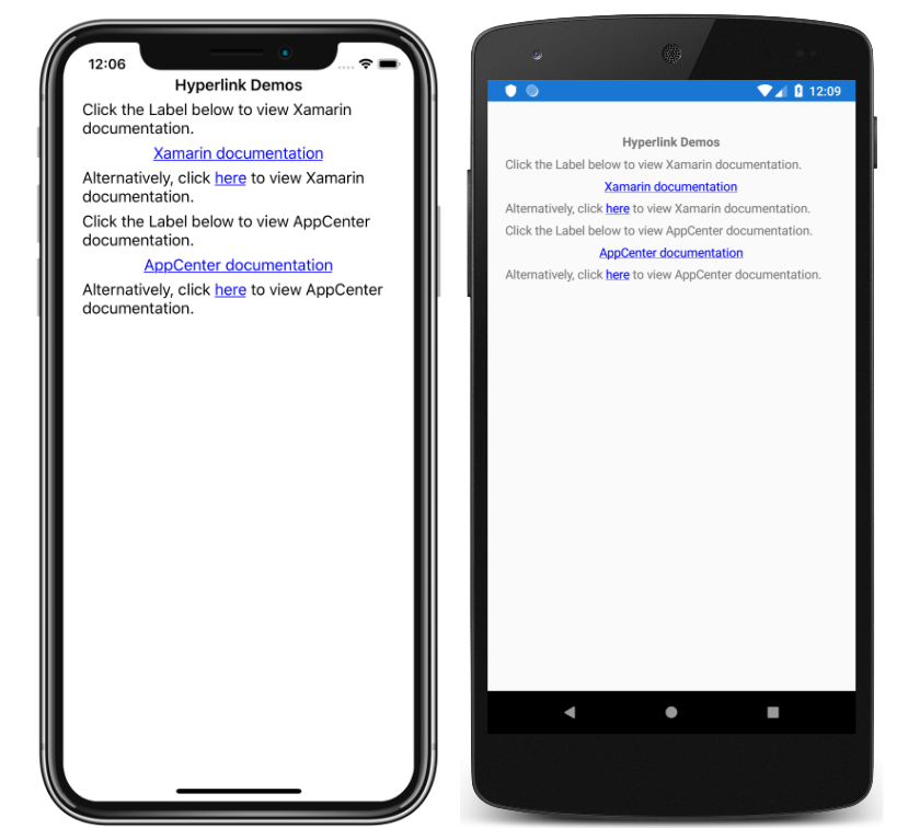 TapGestureRecognizerto theGestureRecognizerscollection of theLabelorSpan, whoseCommandproperty binds to aICommand, and whoseCommandParameterproperty contains the URL to open. - Define the