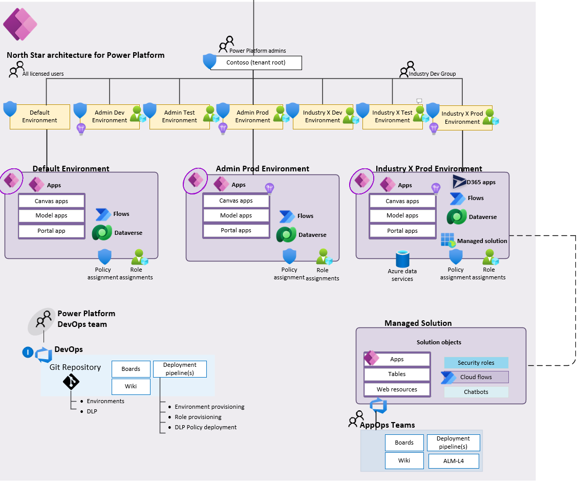 It enables effective construction and operationalization of landing zones (environments) on Power Platform, at scale. This approach aligns with the platform and product roadmap and the Center of Excellence adoption framework.