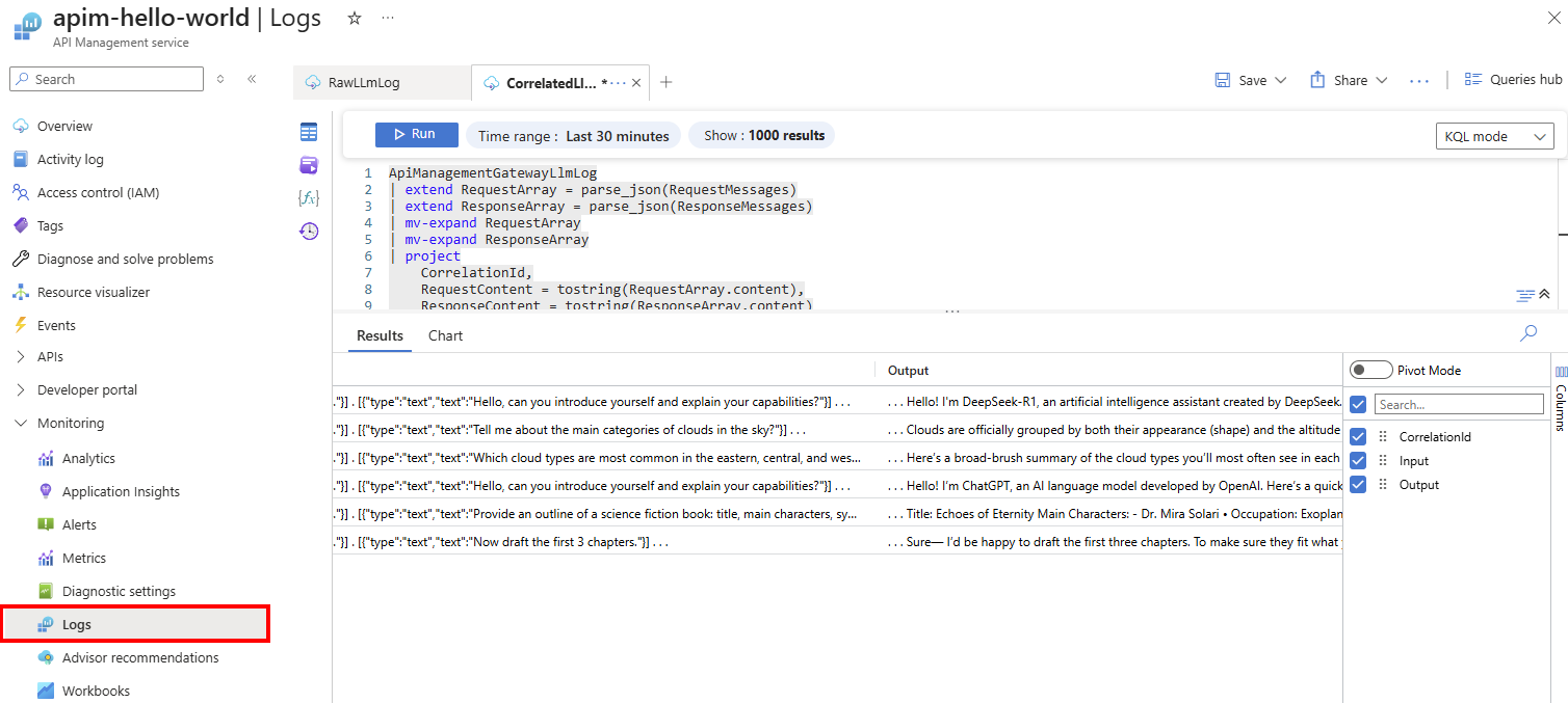 In this article, you learn how to set up Azure Monitor logging for LLM API requests and responses in Azure API Management.