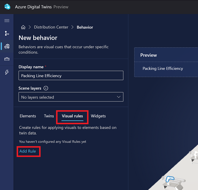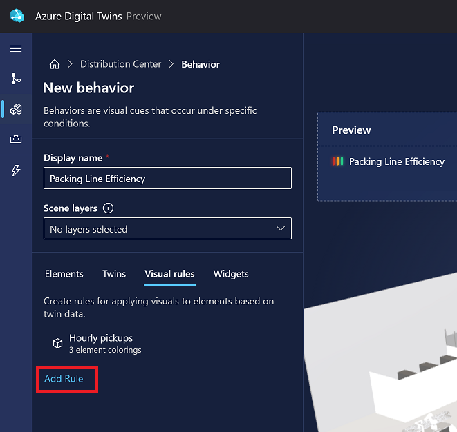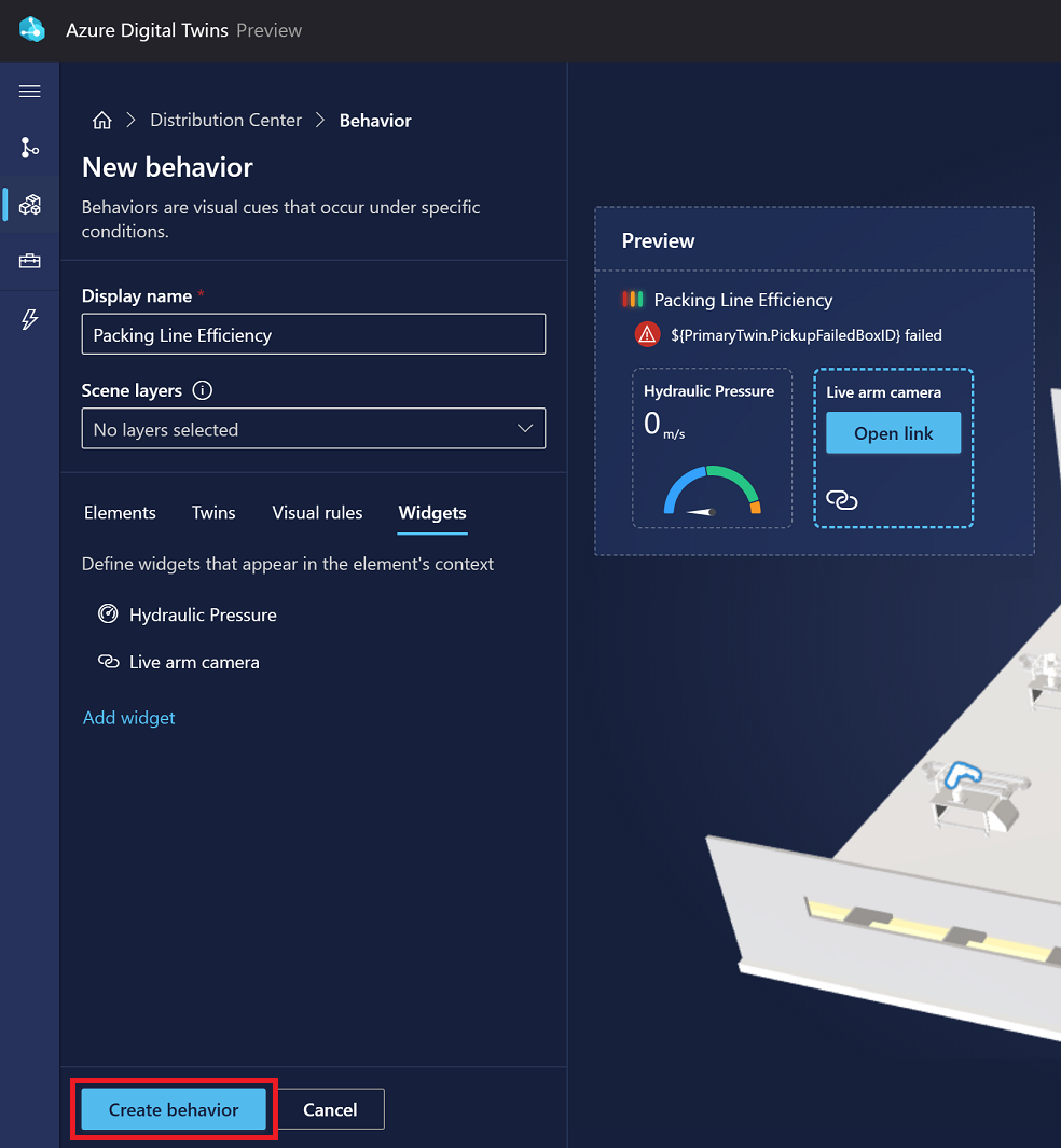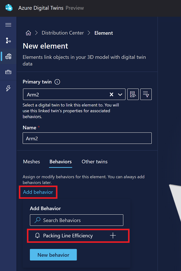 Select Add behavior. Choose the Packing Line Efficiency behavior that you created in this quickstart.