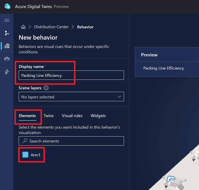 For Display name, enter Packing Line Efficiency. Under Elements, select Arm1.