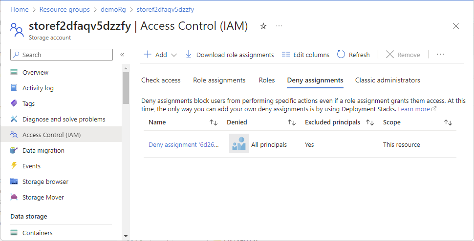 If there are any deny assignments at this scope or inherited to this scope, they'll be listed.
