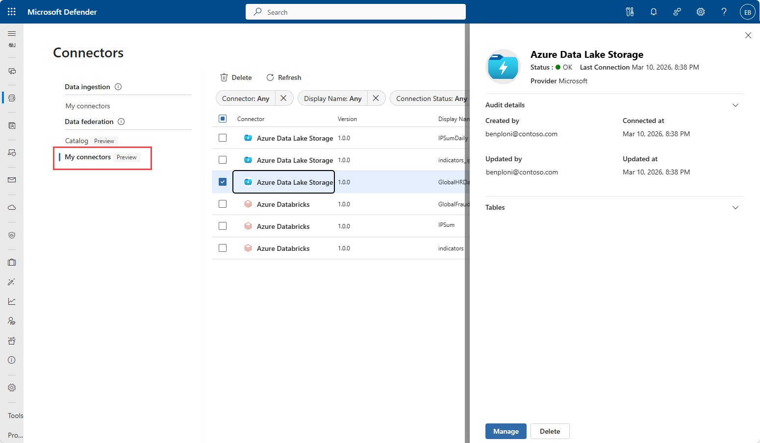 - Navigate to Data federation > My connectors page.