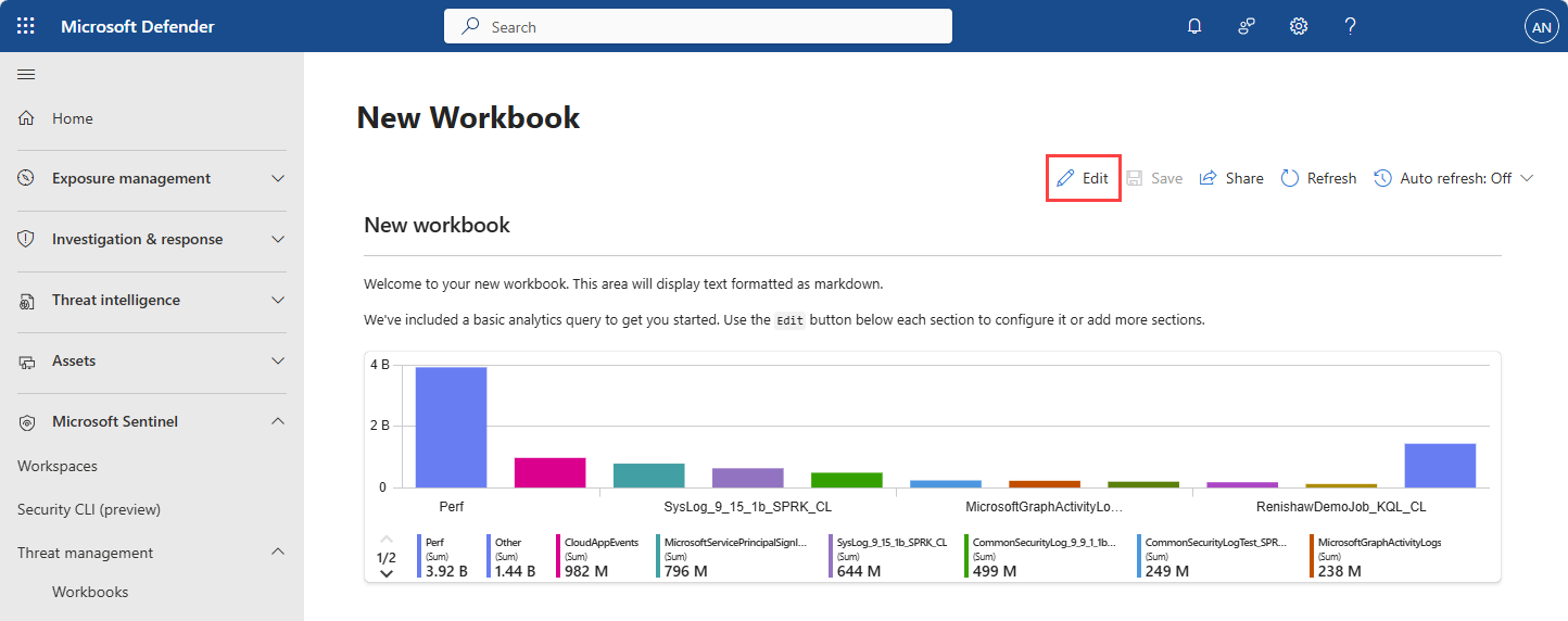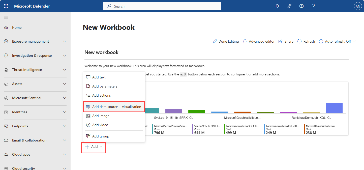 Create a workbook with Microsoft Sentinel data lake as the data source