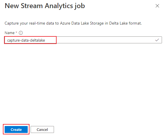 Enter a name to identify your Stream Analytics job. Select Create.