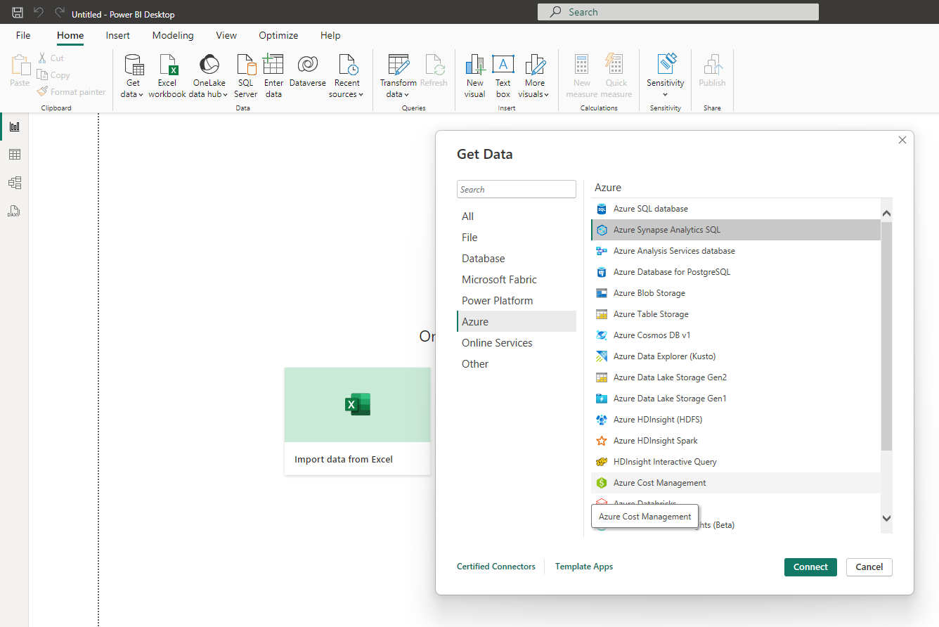 Use the Power BI connector for Azure Synapse SQL.