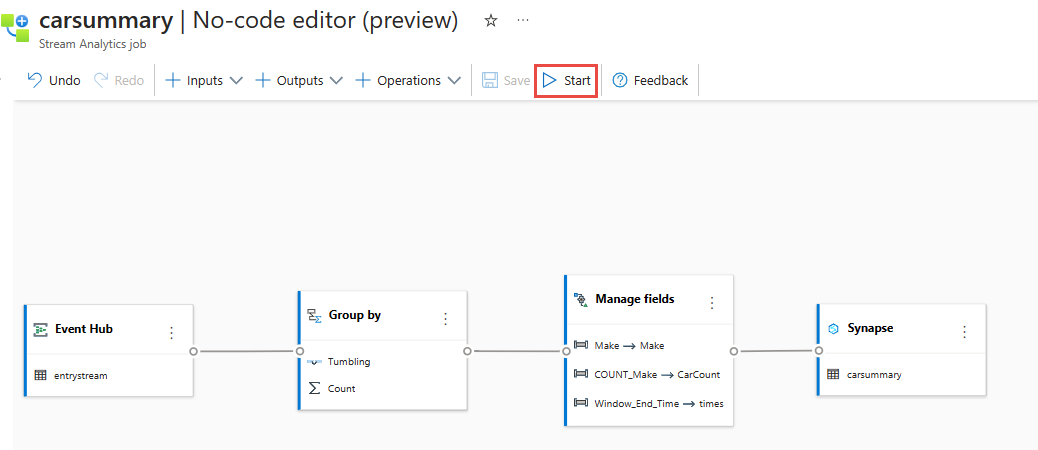 - Create a Stream Analytics job by using the no code editor