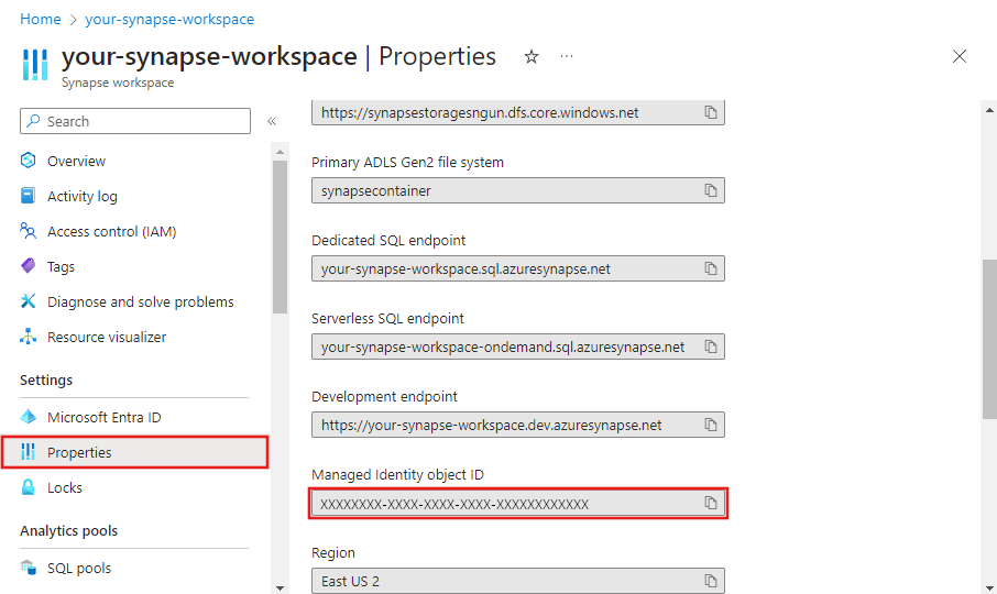 "id": "/subscriptions/<subscriptionId>/resourceGroups/<resourceGroupName>/providers/Microsoft.Synapse/workspaces/<workspaceName>",