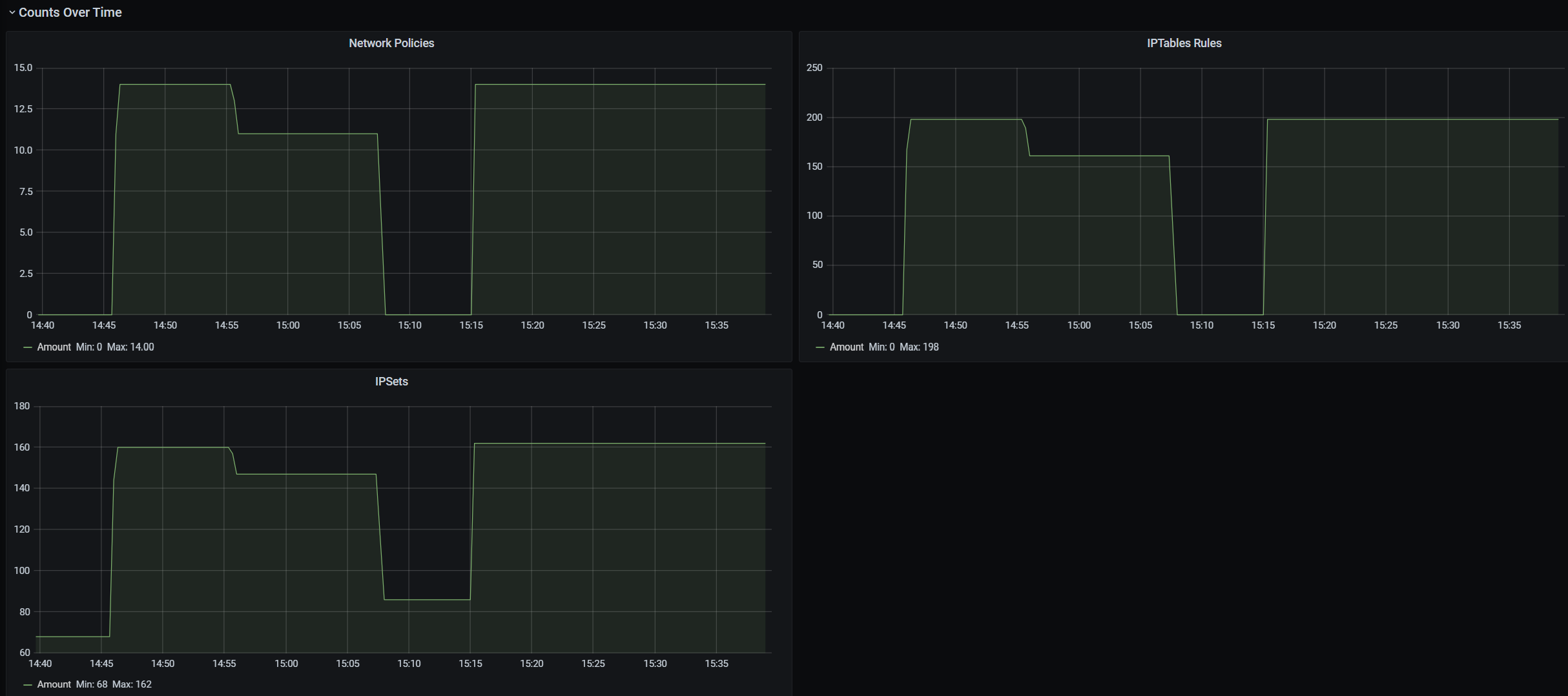Counts of policies, ACL rules, ipsets, ipset entries, and entries in any given ipset