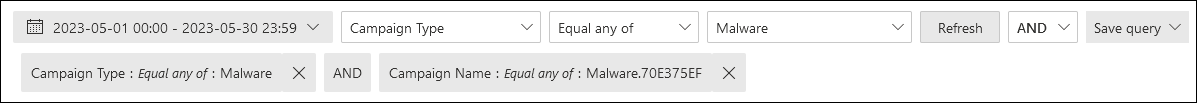 - Malware view > Campaign tab in the details area below the chart.