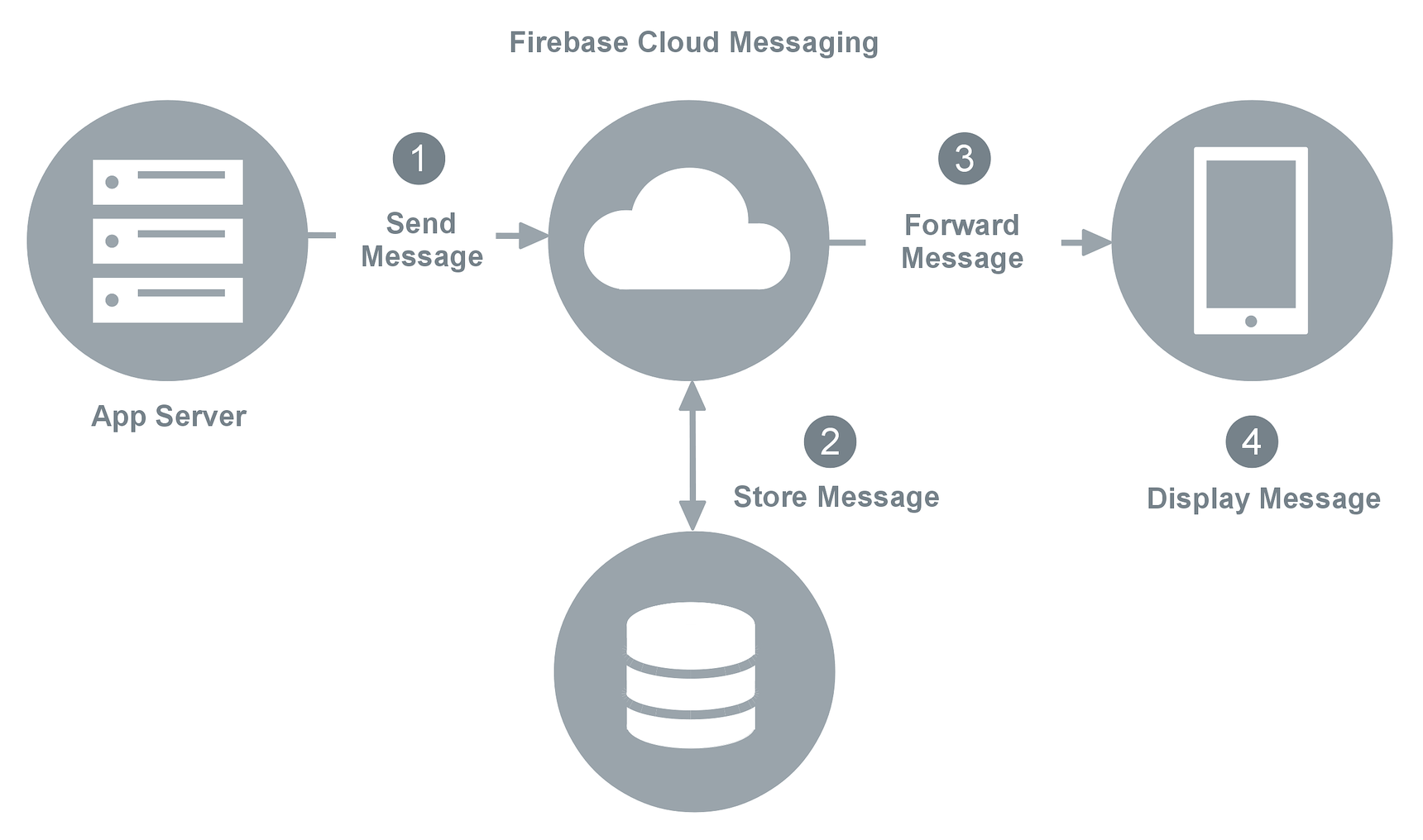 A client app must first register with FCM before messaging can take place. The client app must complete the registration steps shown in the following diagram: