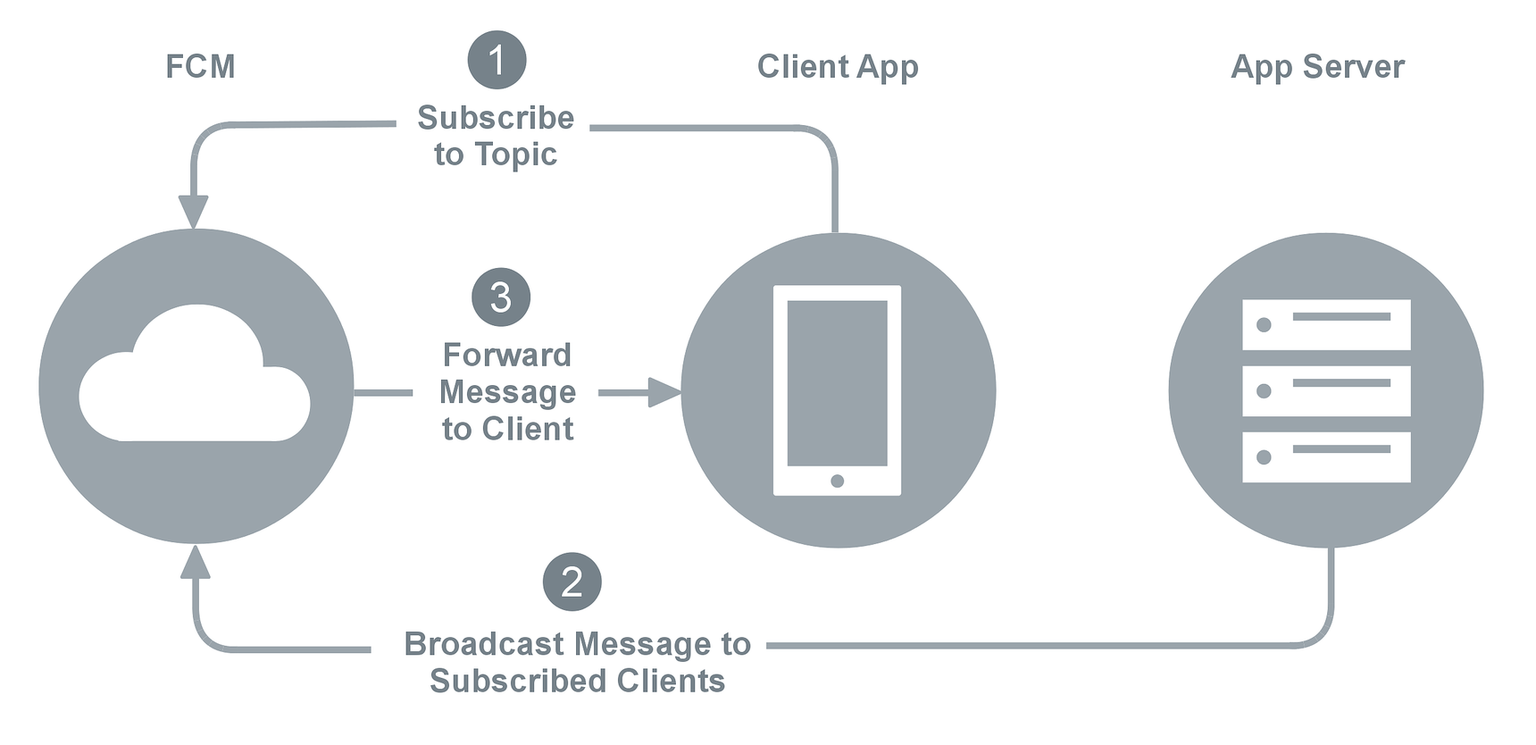 The following steps are used in topic messaging (after the client app obtains a registration token as explained earlier):