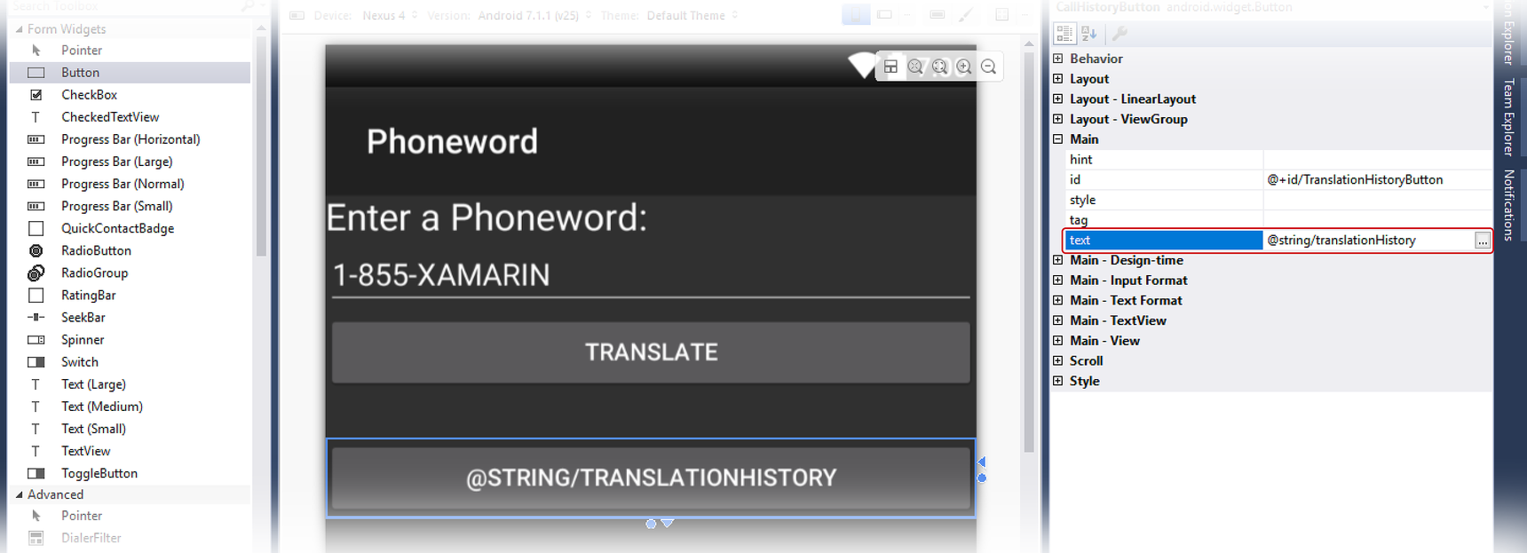 Start by opening the Phoneword application in Visual Studio and editing the Main.axml file from the Solution Explorer.