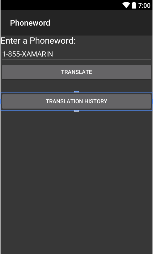 In this walkthrough you'll add a Translation History screen to the Phoneword application.