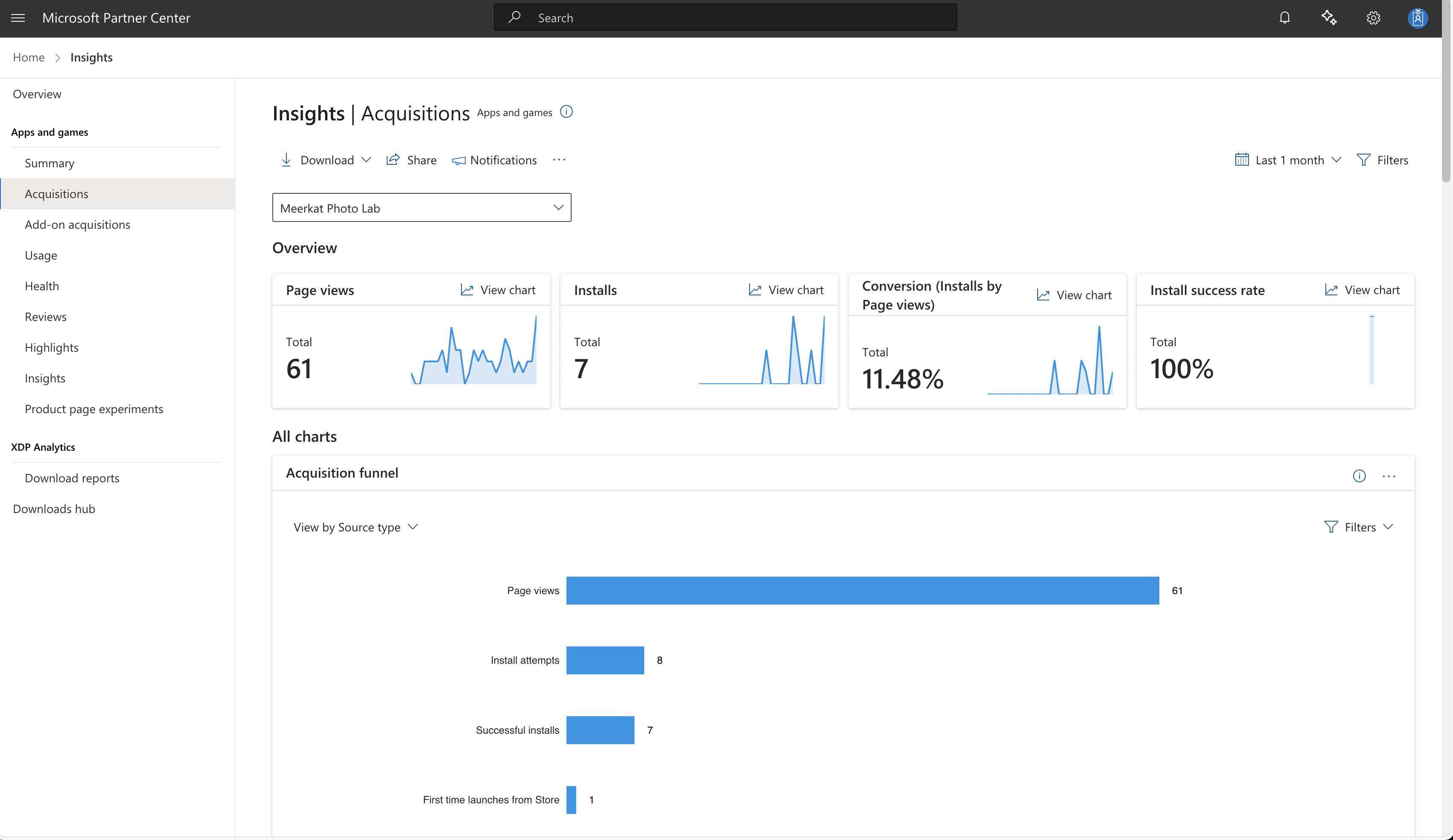 Step 5: To learn how your experiment is performing, you can go to Partner Center insights.