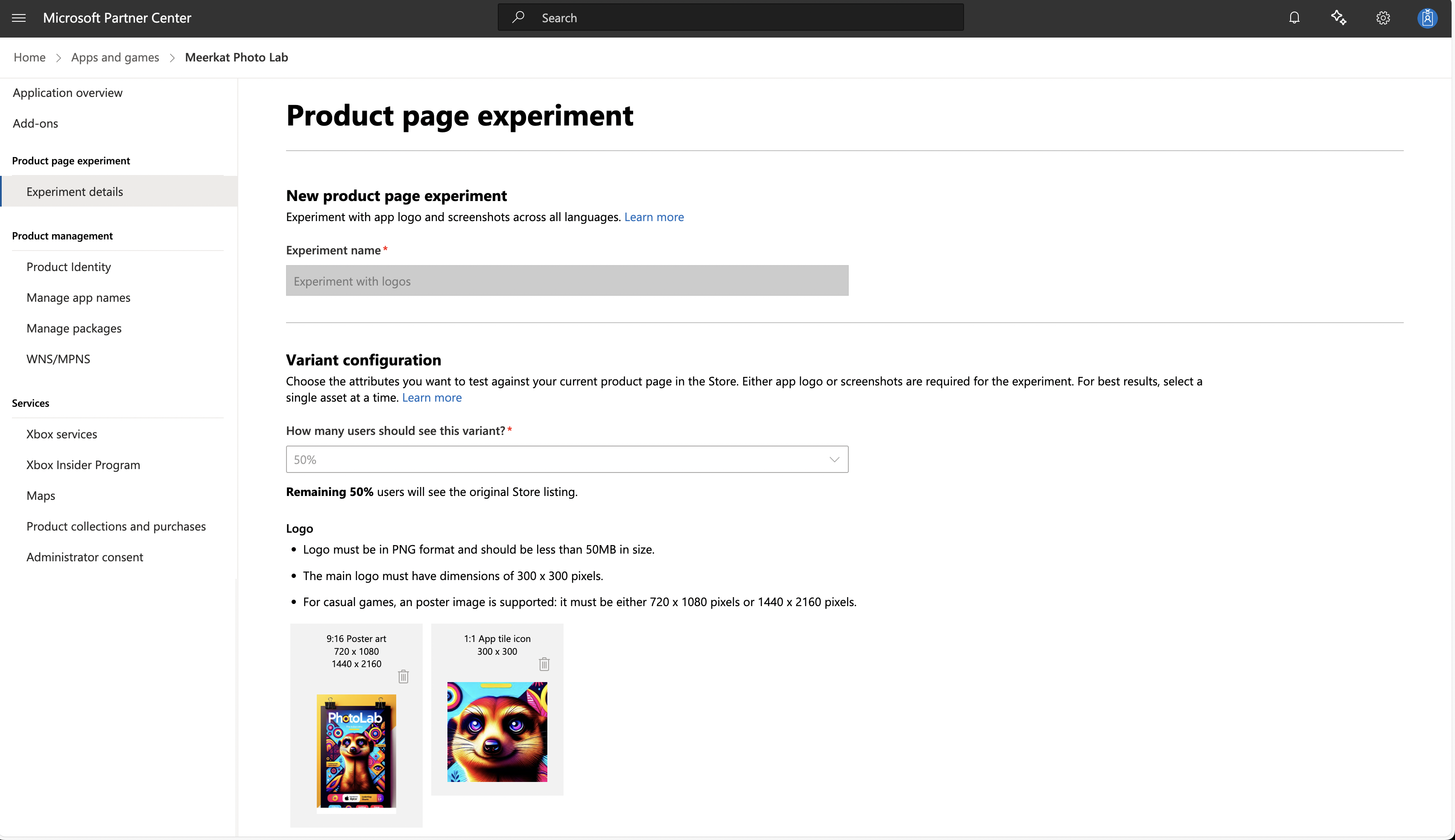 When your experiment is live, we recommend not changing logos or screenshots in your original listing via the update submission as that can invalidate the results of your experiment.