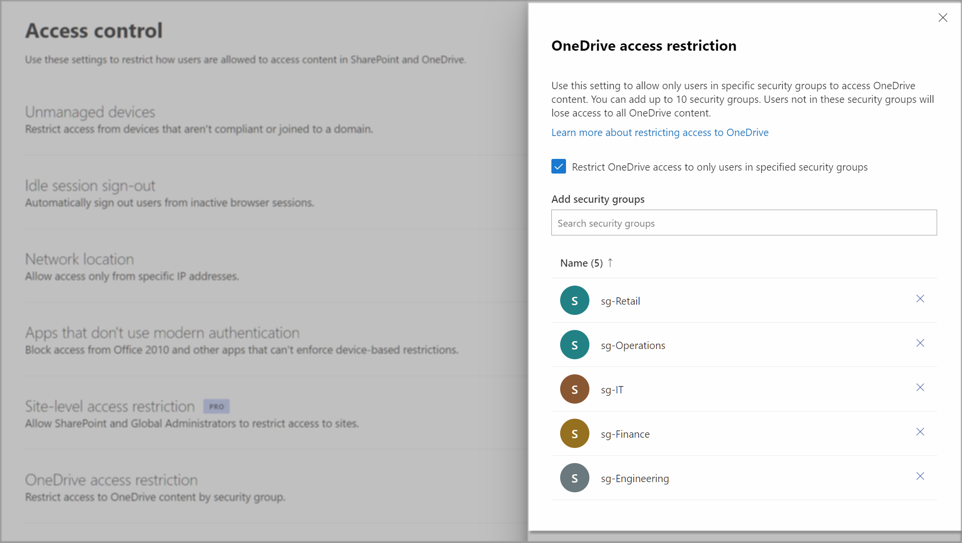 Specify security groups for OneDrive access