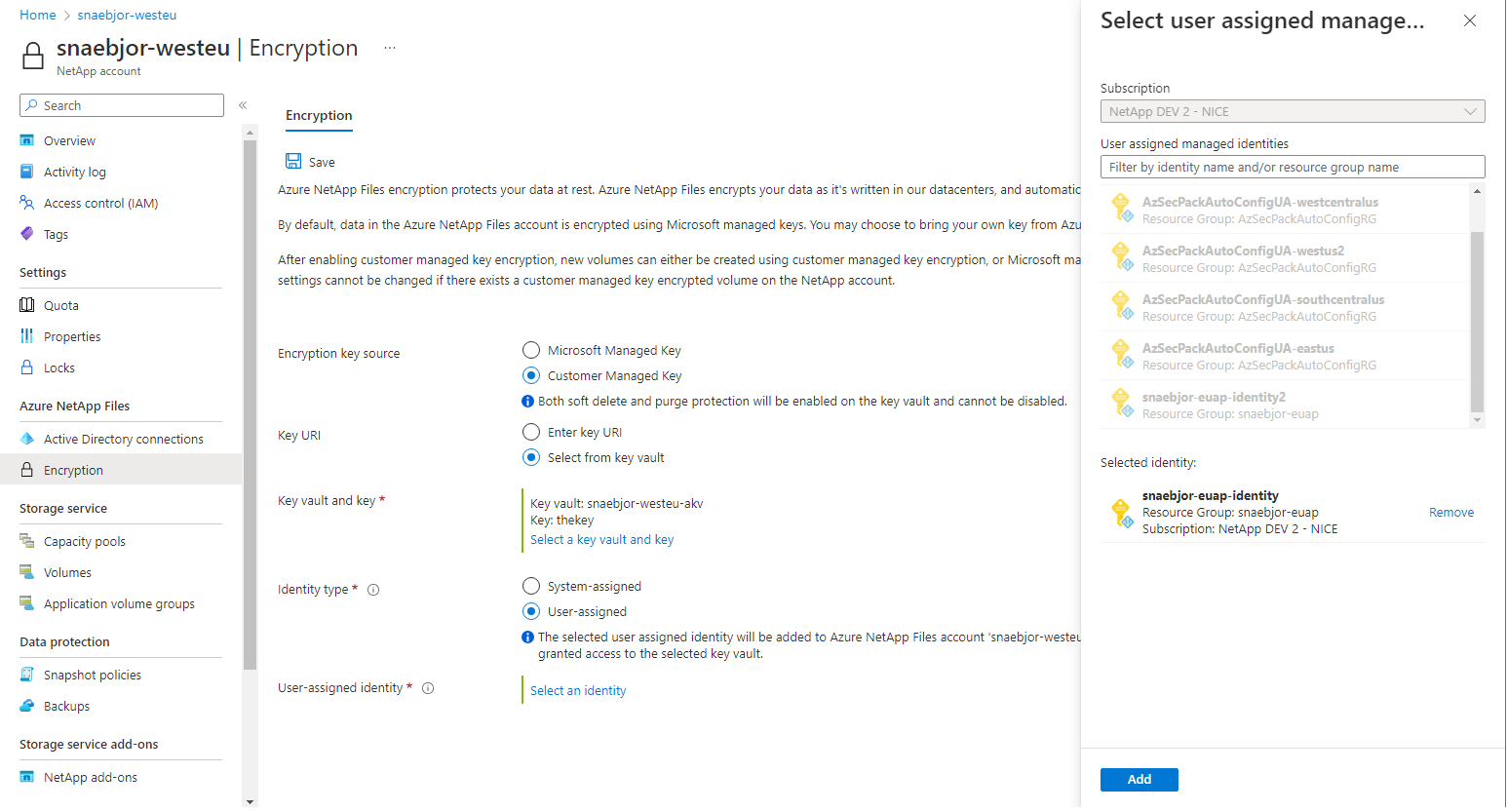 - Ensure you configured your Azure NetApp Files account to use customer-managed keys.