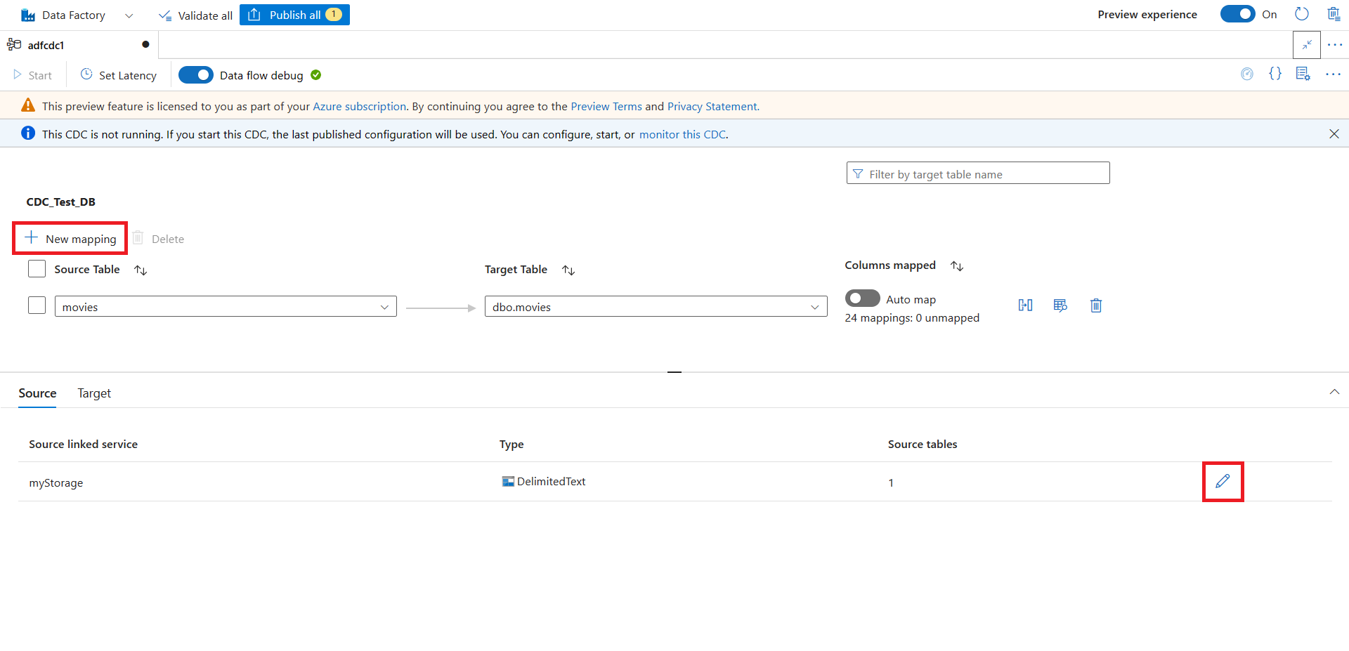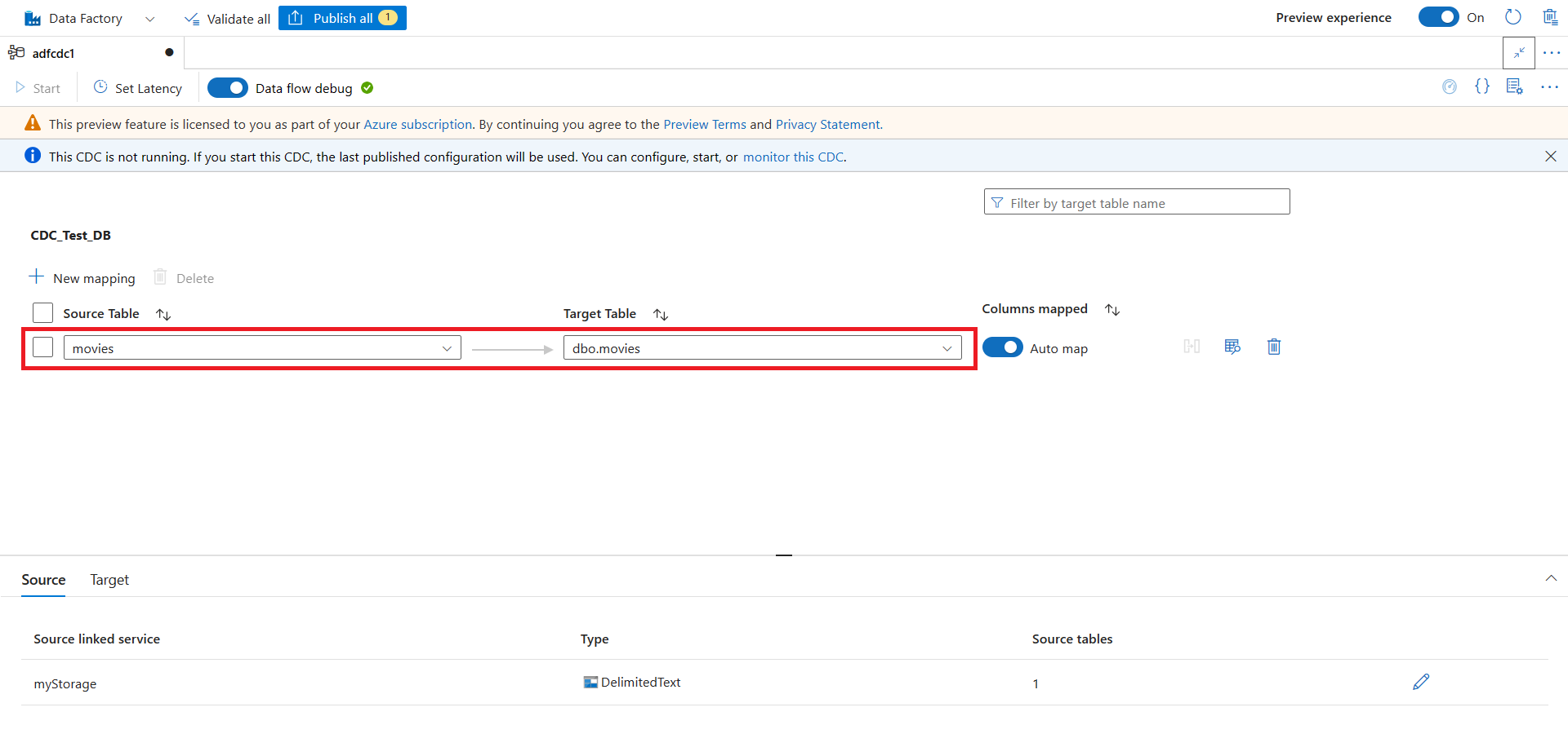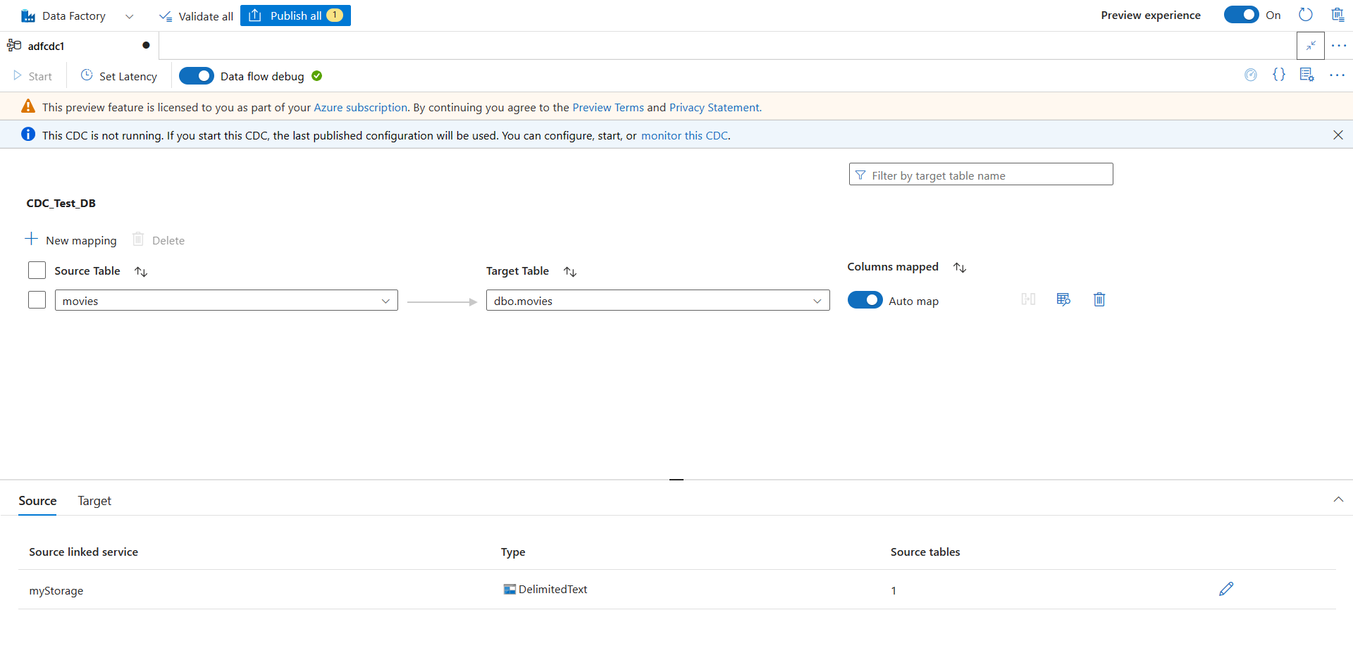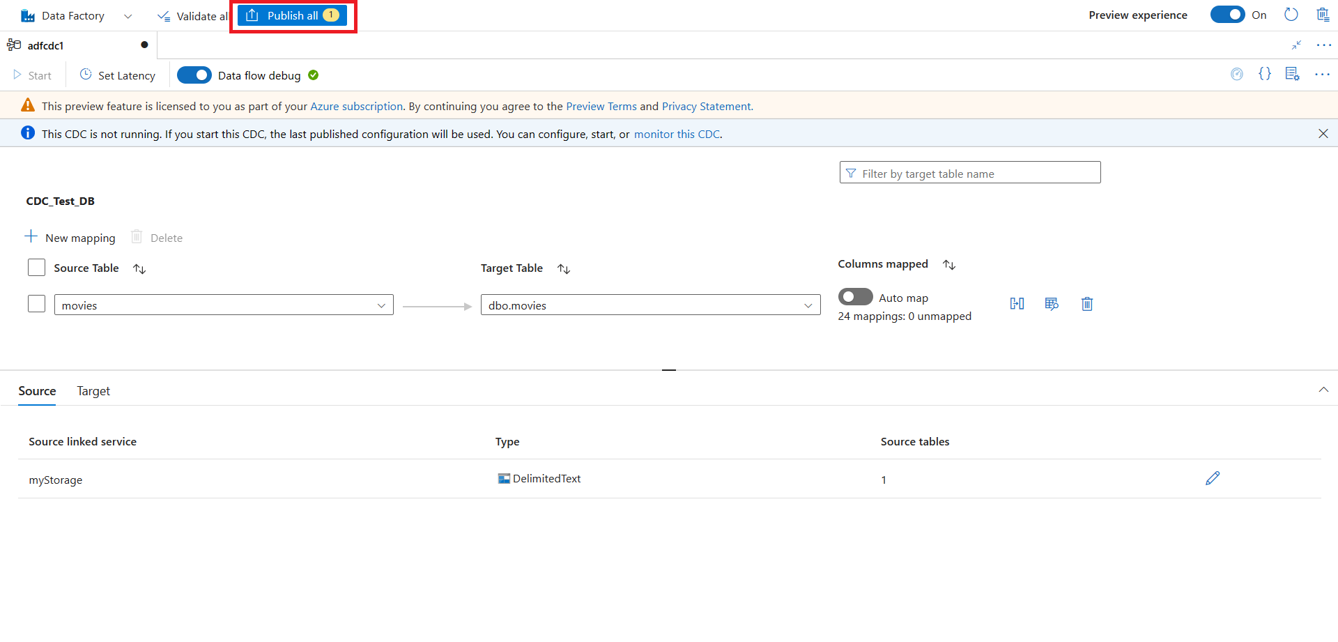 After you finish configuring your CDC, select Publish all to publish your changes.