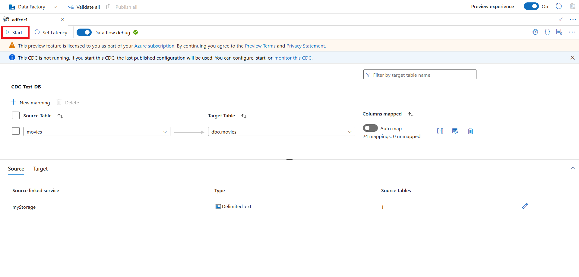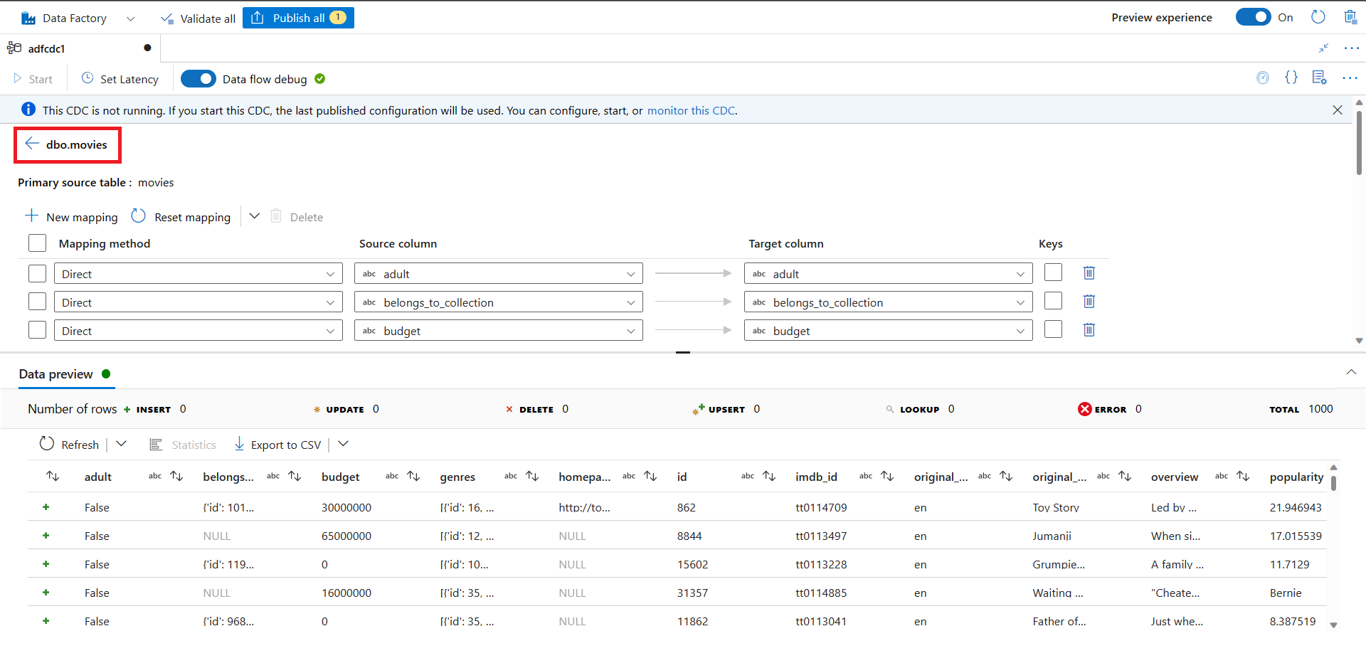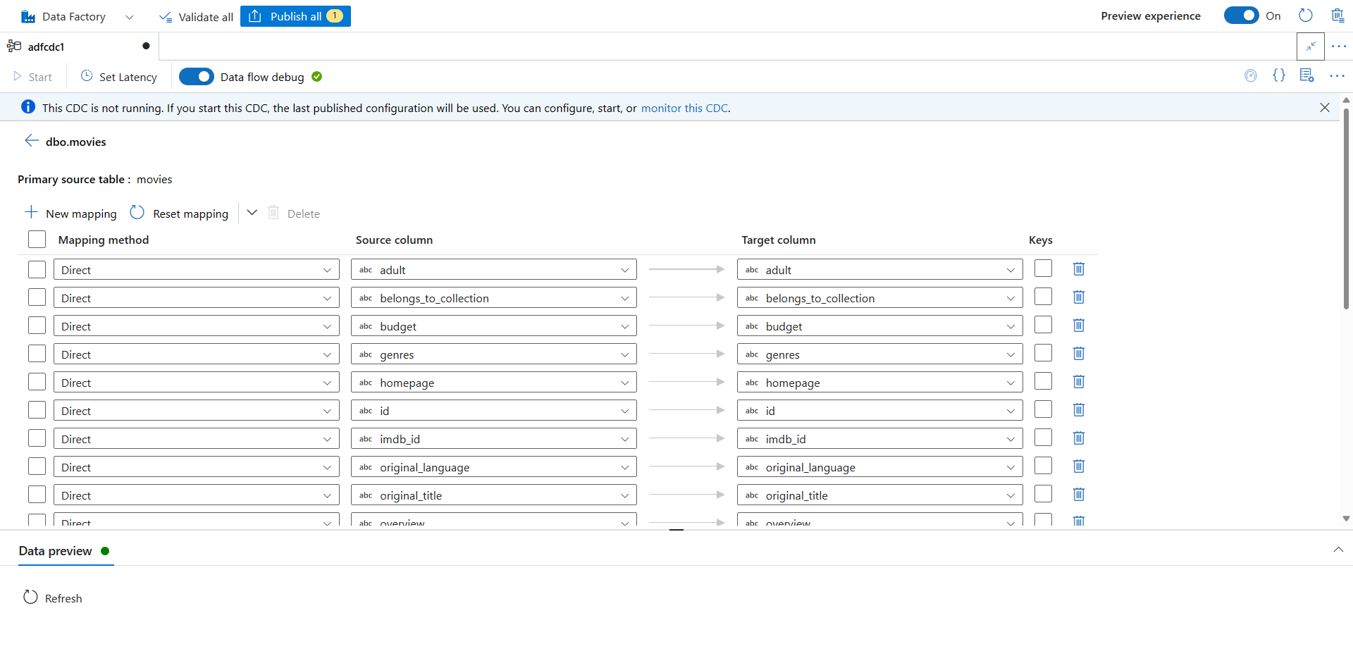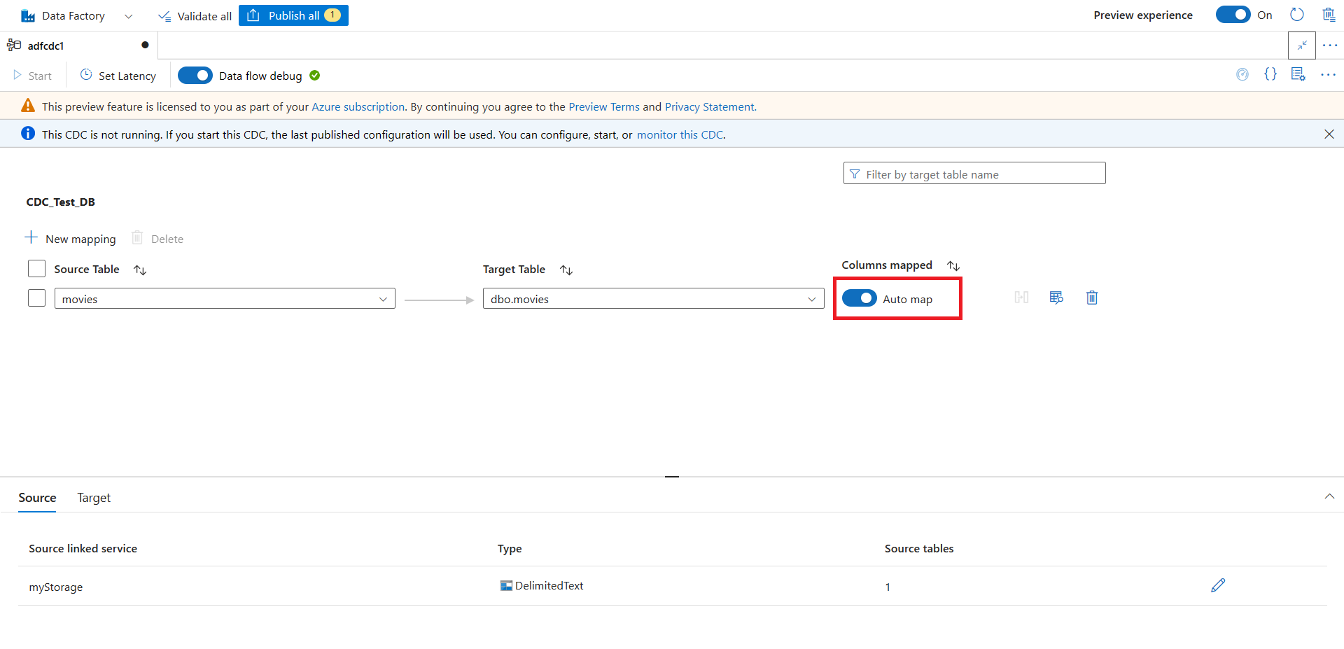 After you finish configuring your CDC, select Publish all to publish your changes.