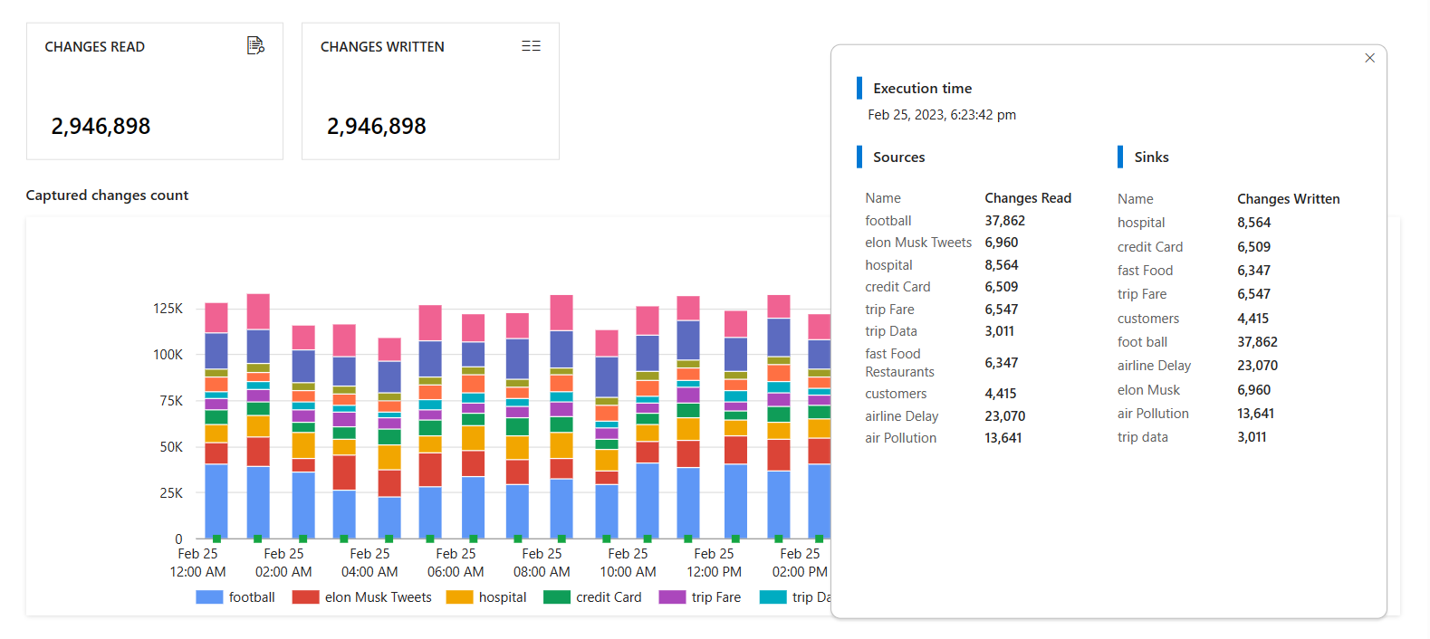 Select the name of your CDC to see more details. You can see how many changes (insert, update, or delete) were read and written, along with other diagnostic information.