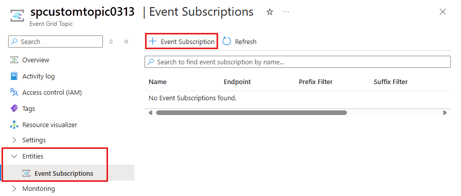Navigate to the Event Grid Topic for your Event Grid custom topic.