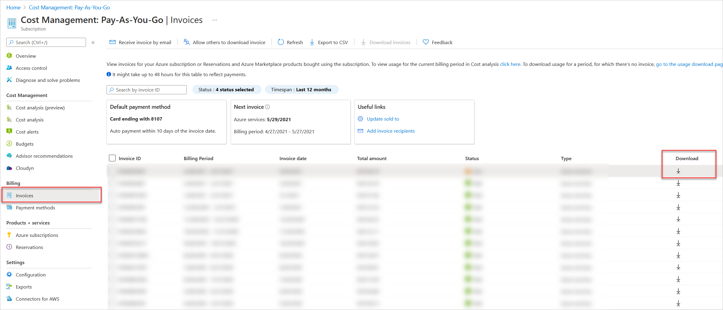 You can display and download information about tagged resources by using the Microsoft Cost Management portal: