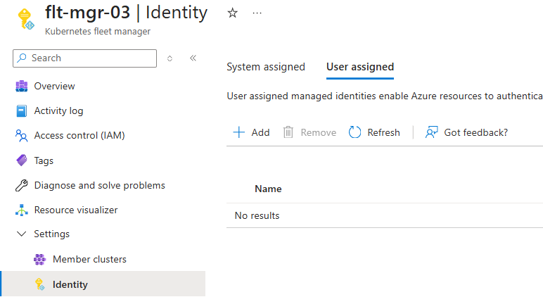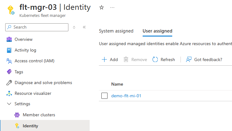 This article shows how to enable the following types of managed identity on a new or existing Azure Kubernetes Fleet Manager: