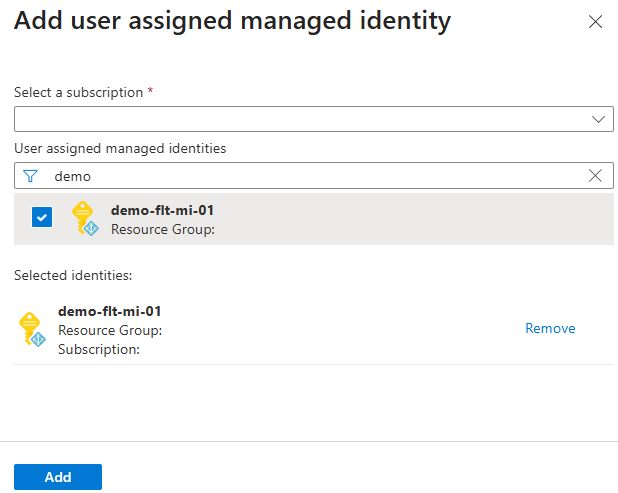 Select Add to add the user-assigned managed identity to the Fleet Manager.