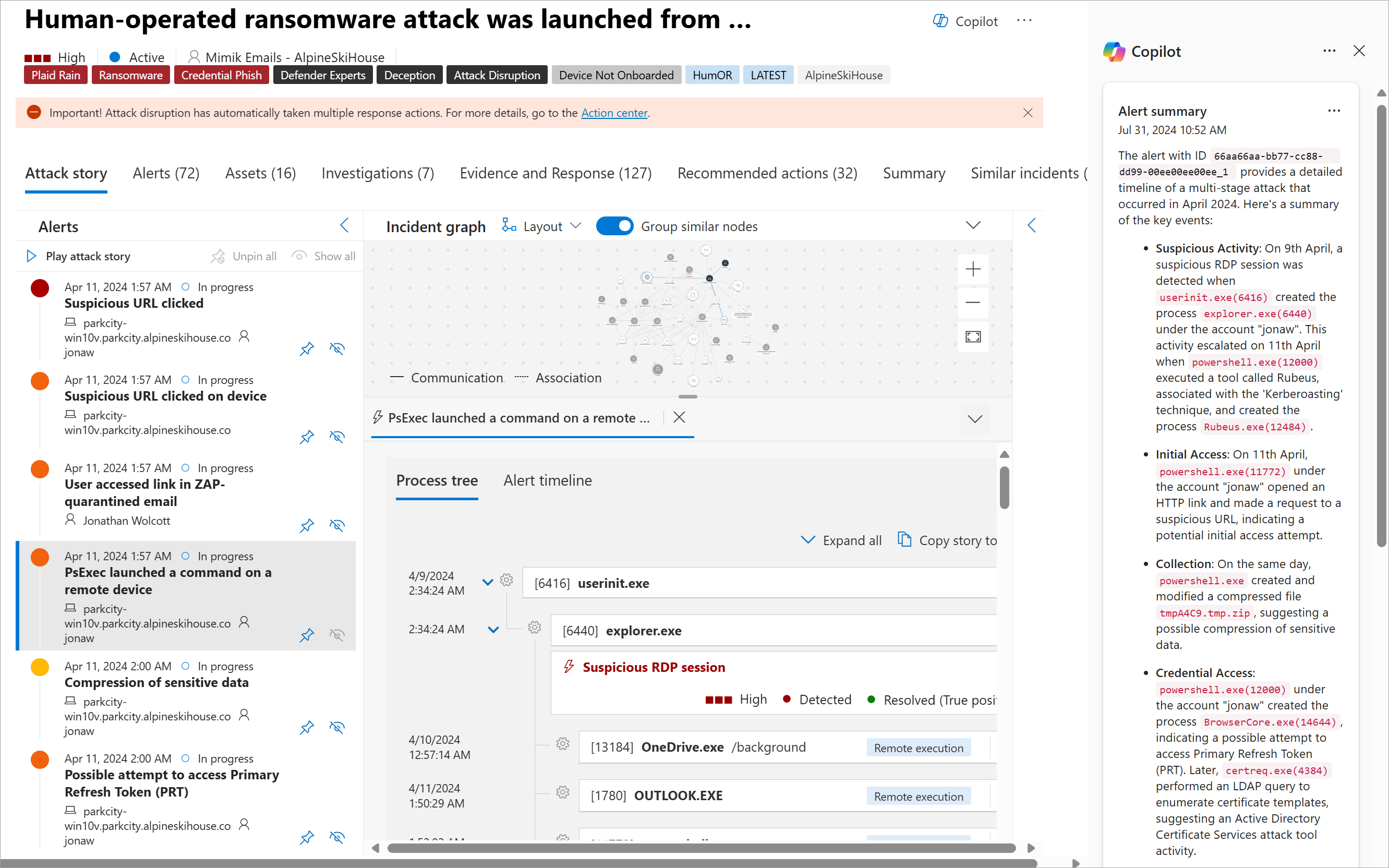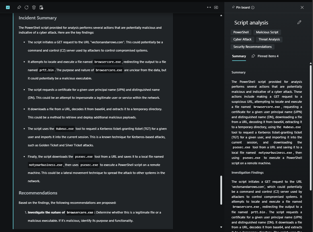 In addition, Security Copilot generated an assessment through a summary report and provided a set of recommendations to contain the incident, which can also be used to improve skills.