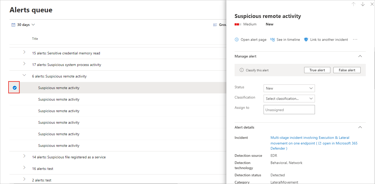 For example, a team leader can review all New alerts, and decide to assign them to the In Progress queue for further analysis.