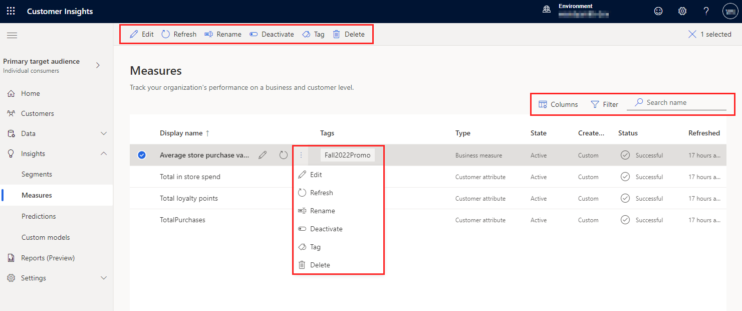 Contributors can delete these deactivated measures if they're no longer needed or reactivate them if they intend to use them again. Alternatively, admins can specify measures that are excluded from the automated deactivation.