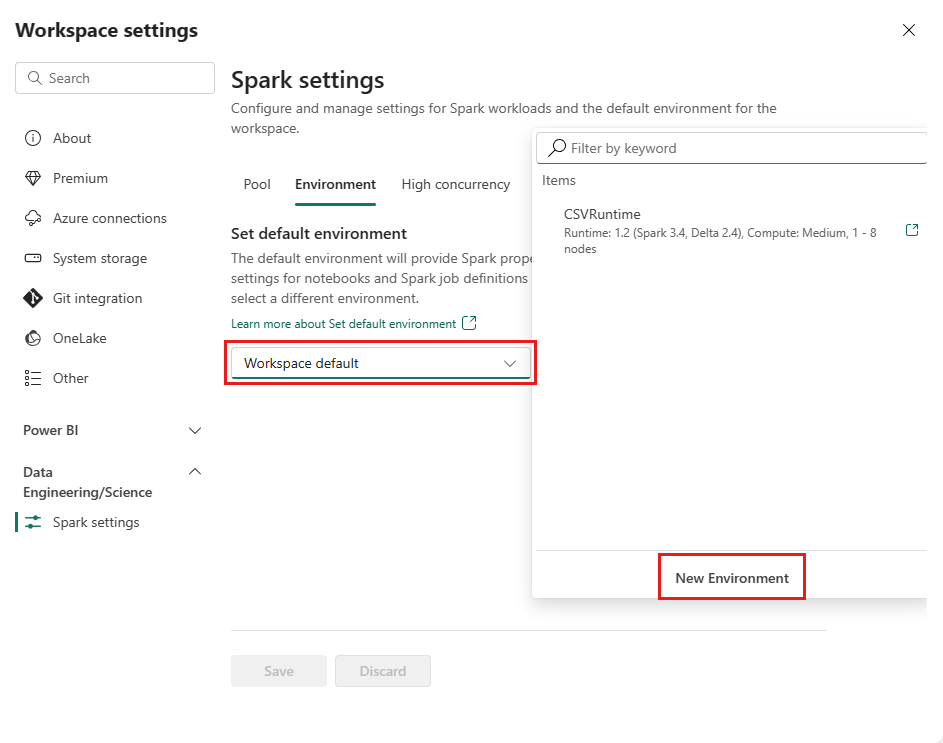 As a Fabric workspace admin, you can select an Environment as workspace default Environment.