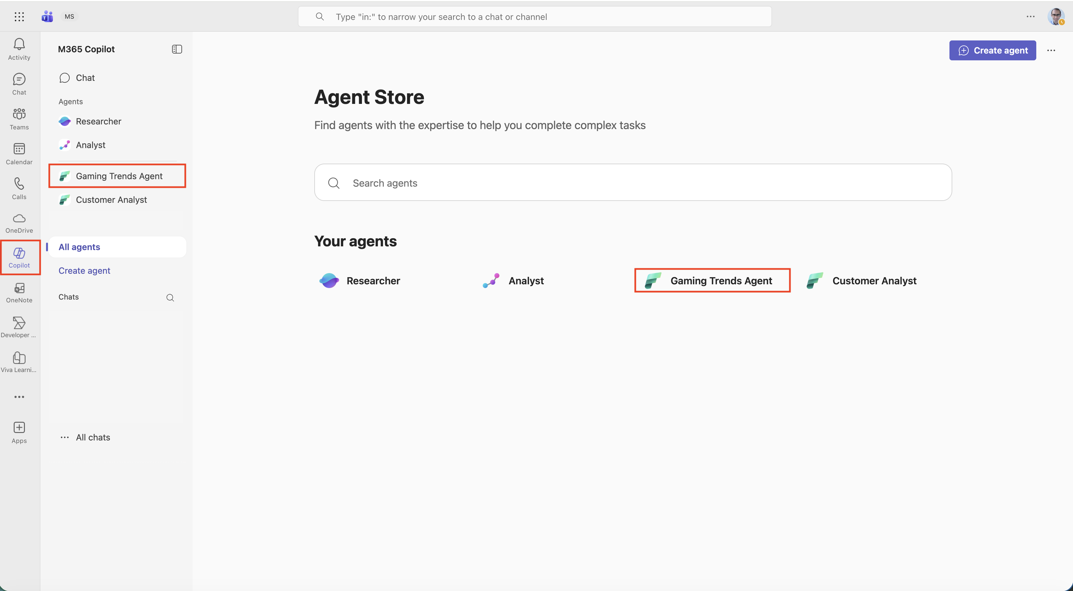 If agents don't appear, ask your Microsoft 365 admin to confirm that Copilot extensibility is enabled for your account. For more information, see Manage Copilot agents.