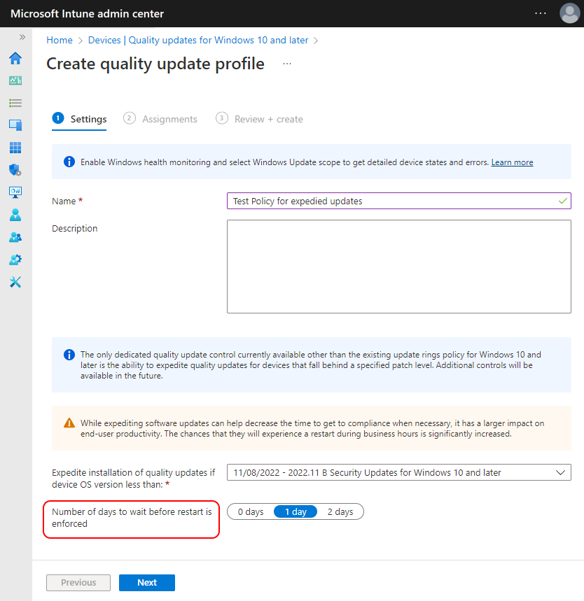 With expedited updates, you can expedite the installation of quality updates like the most recent patch Tuesday release or an out-of-band security update for a zero-day flaw.
