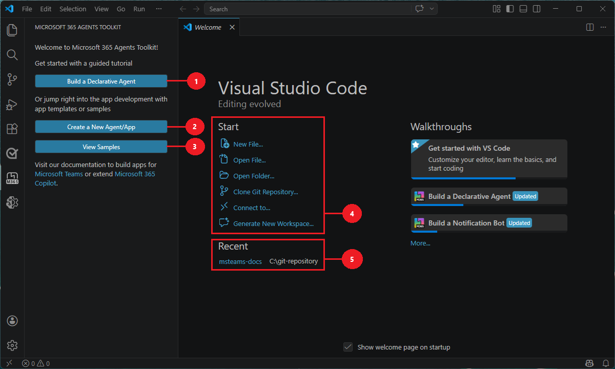 You can explore the look and feel of Microsoft 365 Agents Toolkit (previously known as Teams Toolkit) within the Microsoft Visual Studio Code.