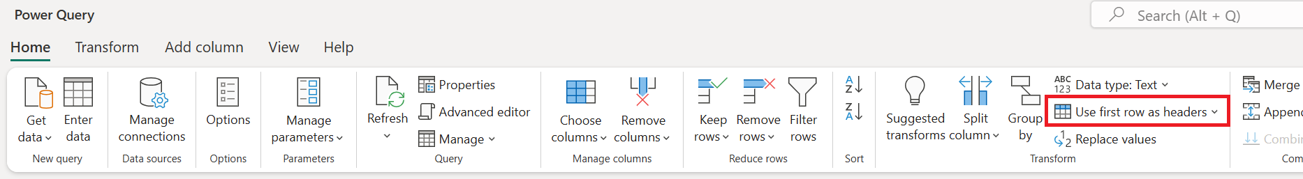 When you create a new query from unstructured data sources such as text files, Power Query analyzes the contents of the file. If Power Query identifies a different pattern for the first row, it tries to promote the first row of data to be the column headings for your table. However, Power Query might not identify the pattern correctly 100 percent of the time, so this article explains how you can manually promote or demote column headers from rows.